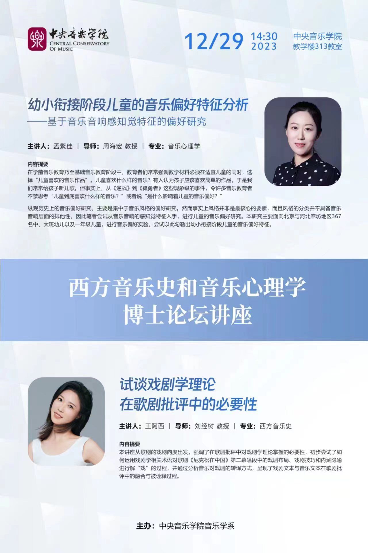 西方音乐史和西方心理学博士论坛讲座——主讲人:孟繁嘉 王阿西