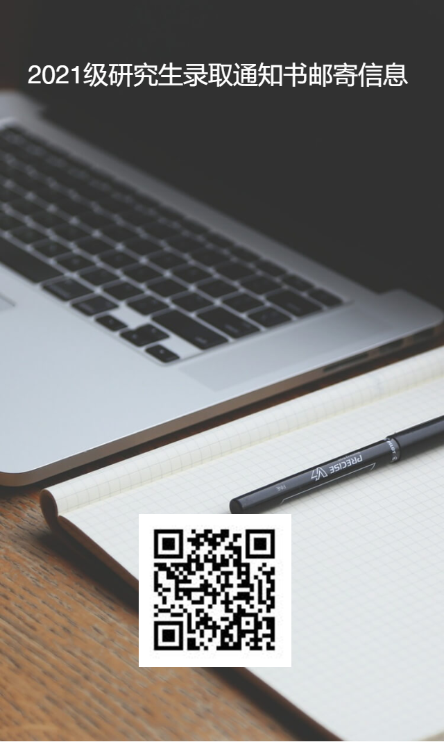 各位2021级拟录取研究生,录取通知书拟定于6月底7月初通过快递邮寄,请各位考生在6月21日前扫描二维码如实填写接收邮件的详细地址、收件人电话等信息。