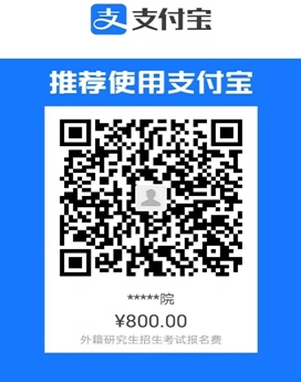 6.缴费成功截图。考生须使用支付宝扫描下方二维码支付报考费800元,备注姓名、报考研究方向,缴费成功后,上传订单截图,以“缴费截图”命名。考生的一切费用自理,报名后不参加考试者费用不退。