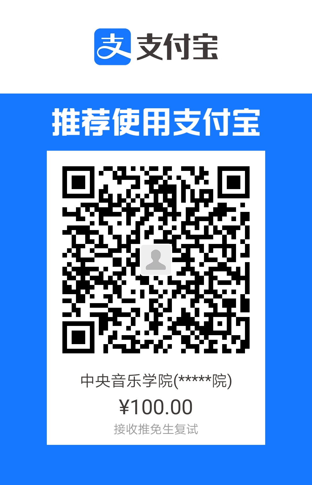 请上述考生扫描二维码缴纳复试费100元,务必备注姓名。