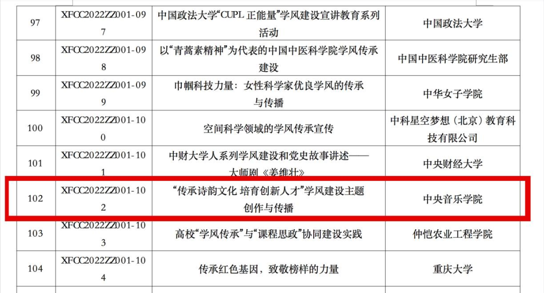 近日,中国科协公布了2022年度学风传承行动项目立项名单。由北京环球音像出版有限公司牵头,永利作曲系张帅教授作为项目负责人申报的《“传承诗韵文化 培育创新人才”学风建设主题创作与传播》,经专家评议和遴选,从清华大学、北京大学等全国知名高校和科研院所的531个申报项目中脱颖而出,作为唯一的一所专业艺术高等院校,获批成为本年度“精品资助项目”。