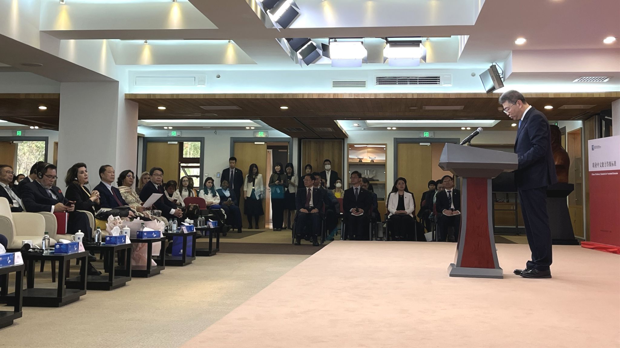 教育部副部长吴岩出席仪式并发表主旨讲话,永利党委书记赵旻应邀出席活动,并与上海合作组织秘书长张明、印度尼西亚驻华大使周浩黎、北京外国语大学校长杨丹、中铝股份有限公司人力资源部总经理石森、“新汉学计划”青年学者范狄等中外嘉宾一起,共同见证“中海人文交流和文明互鉴双语文库”项目启动和《职业中文能力标准》发布,印尼驻华大使夫人艾茜薇女士“画布上的多彩生活”画展揭幕,语合中心与哈尔滨、兰州、连云港签署“中文+”项目协议等系列仪式,共同启动2023年“国际中文日”。