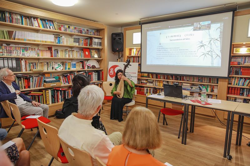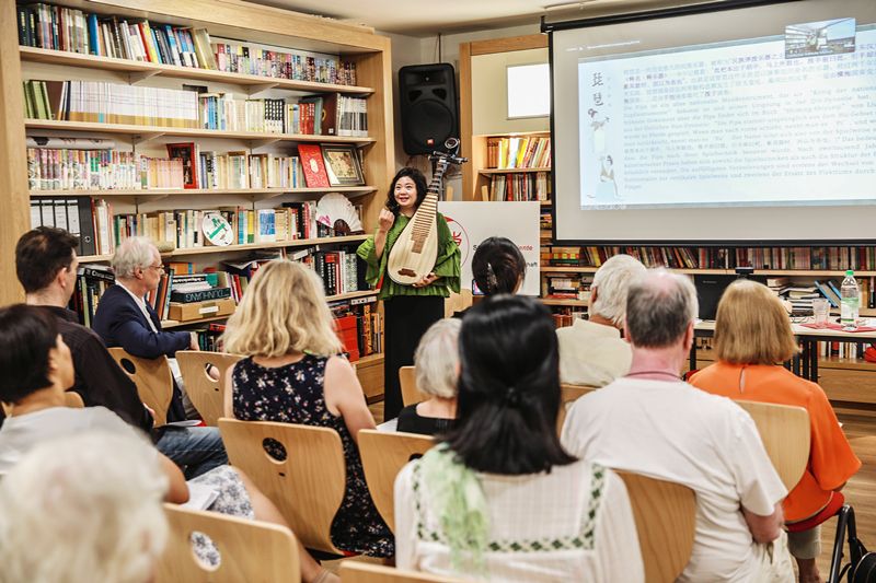 讲座结束时,现场响起了热烈的掌声。许多外国友人表示,这次讲座让他们对琵琶这一古老乐器有了更加深入的了解和认识,也让他们更加热爱和尊重中华传统文化。慕尼黑孔子学院中方院长缪雨露也表示,未来将继续举办更多类似的文化交流活动,为增进中德两国人民之间的友谊和文化交流做出更大的贡献。