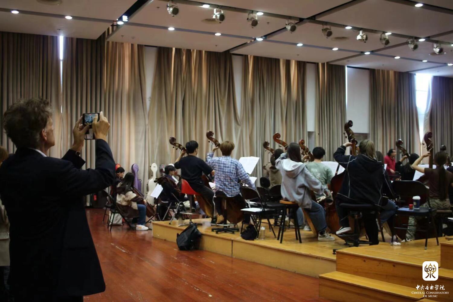 此外,卢克副校长还在教学楼1401排练厅观摩了俄罗斯马林斯基歌剧院终身客座指挥亚历山大·拉赫巴里教授(Alexander Rahbari)指挥的本科乐队课。
