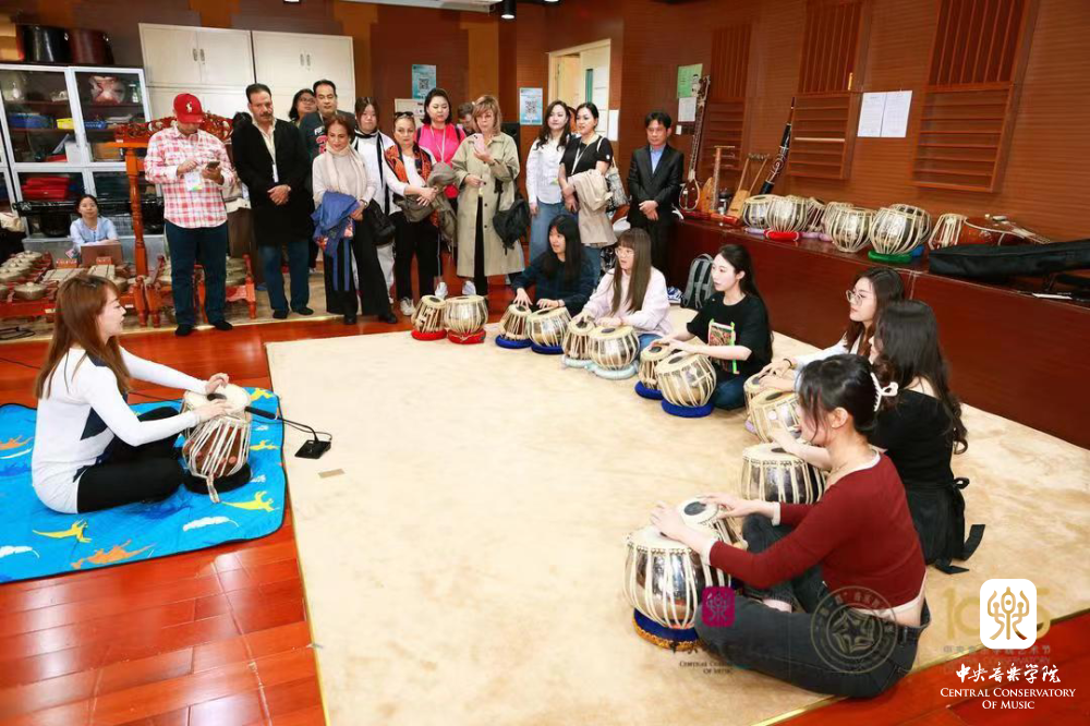 印度塔布拉鼓课师生在展示鼓乐演奏