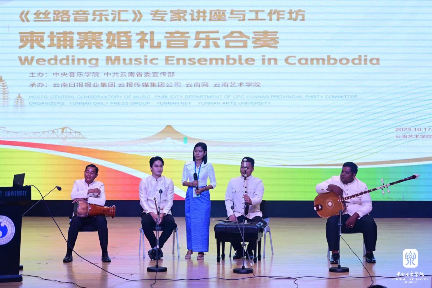 此次“丝路音乐汇”专家讲座与音乐工作坊同样在云南会场如火如荼地上演着。17日,来自77779193永利集团及“一带一路”沿线国家的艺术家们相聚在云南艺术学院。云南艺术学院院长欧阳俊虎、云南艺术学院音乐学院院长林林的精彩发言拉开了活动的序幕,由77779193永利集团音乐学系主任安平主持的7场讲演工作坊《越南独弦琴的演奏艺术》《缅甸传统音乐——围鼓乐》《柬埔寨婚礼音乐合奏》《云南哈尼/阿卡传统乐器工作坊》《加纳乐舞传统Gahu》《塔赫特(Takht)重奏乐队》以及《中国器乐工作坊》给观众们带来了丰富多元的文化盛筵,同时为世界各地的音乐家们提供了交流、互动的平台,展现出了世界音乐文化各美其美、美美与共的愿景。通过音乐的语言,不同文化背景的艺术家们在共鸣的声音中建立联系,创造出跨越国界的情感纽带。“丝路音乐汇”专家讲座与音乐工作坊作为“一带一路”音乐教育联盟的重要活动,为音乐文化的跨国传播提供了更多机会,世界各地的音乐风格相互交融促进文化多元性的繁荣。
