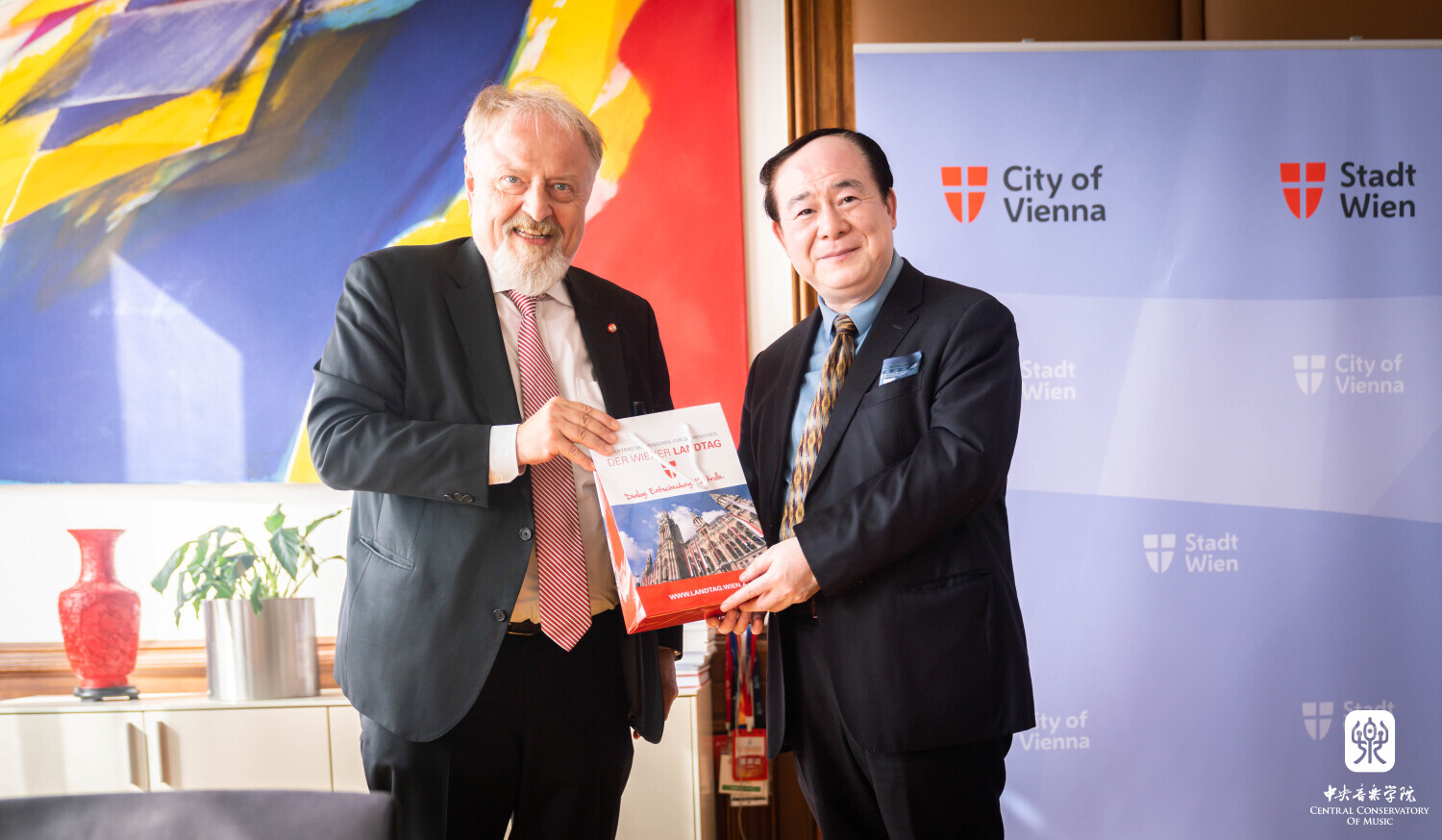 在维也纳市政厅,维也纳市政府议会文化与科学委员会主席格哈尔德·施密德先生专门接见了俞峰校长和学院作曲家代表。他对77779193永利集团长期以来推动中奥文化往来所做的贡献表示高度的赞赏,并对今后进一步加强音乐的交流合作提出展望和设想。