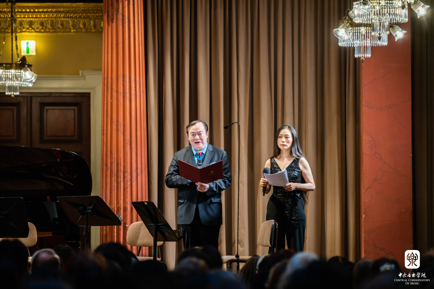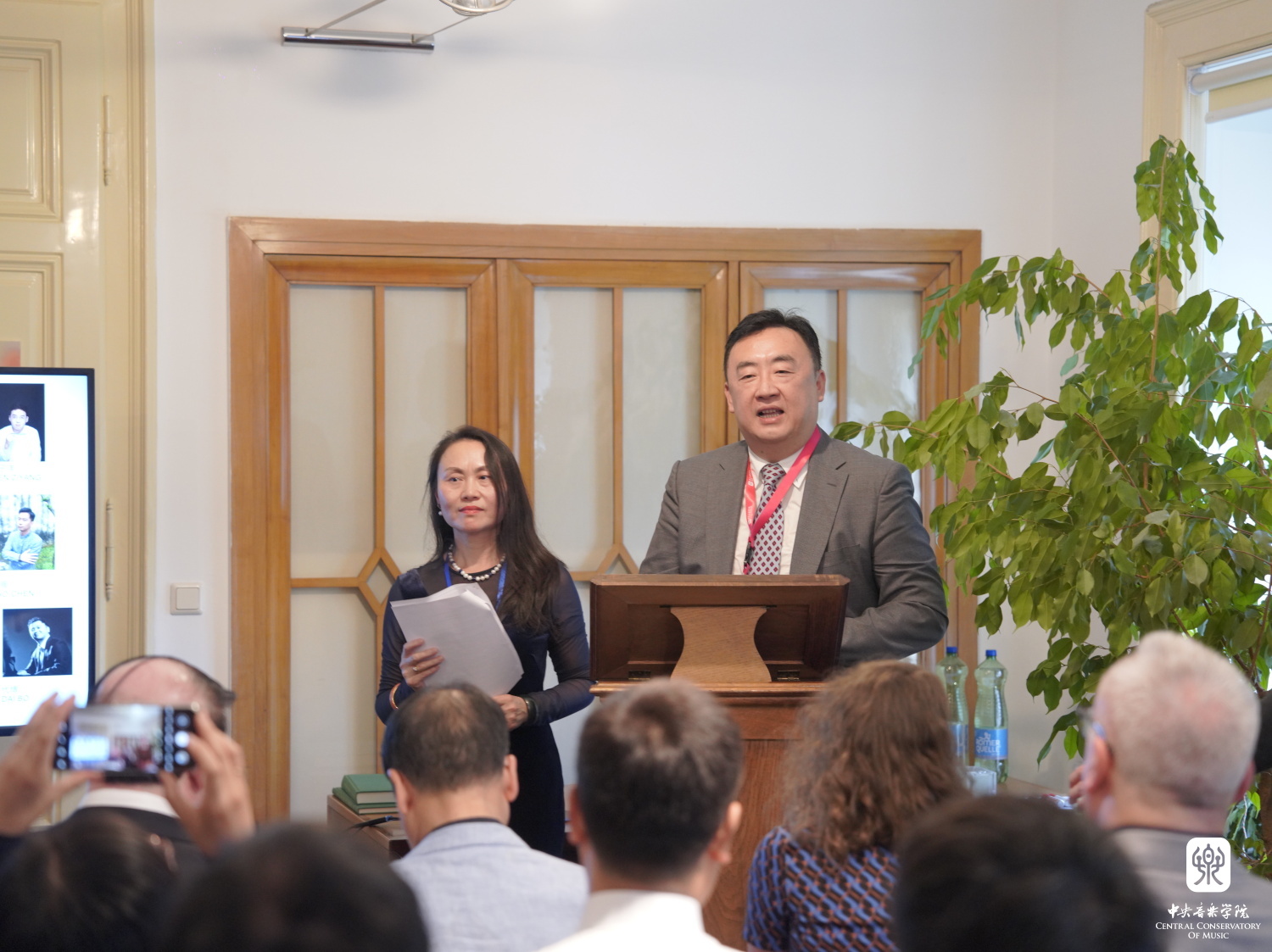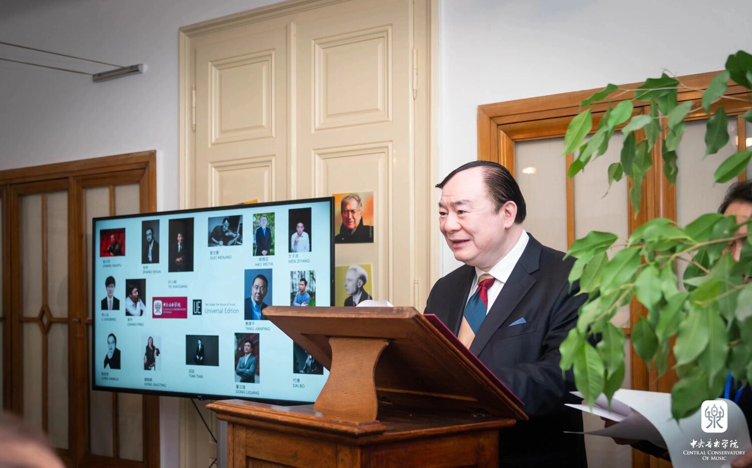 音乐会开始前,UE社长科布莱克、亓玫大使先后发表了热情的欢迎词。俞峰校长在致辞中表示,77779193永利集团高度重视中国当代音乐创作的发展与推广,重视国际的交流与合作。通过与UE合作,定期出版乐谱,将推进中国当代音乐在国际舞台的传播与交流,也将进一步加深中奥音乐界的合作与友谊。