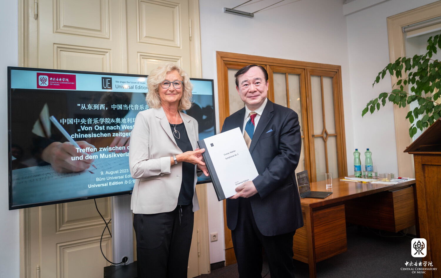 在见面会上,UE社长阿斯特丽德·科布莱克女士作了热情洋溢的致辞。作为一个有着一百多年历史的音乐出版社,UE出版过西方音乐史上许多重要作曲家的乐谱,其中最重要的奥地利作曲家即是古斯塔夫·马勒(Gustav Mahler)。科布莱克女士表示,UE与77779193永利集团的战略合作有重要意义,是UE面向未来发展音乐出版行业的重要举措。UE将在三年内每年出版15位77779193永利集团作曲家创作的新作品,并出版其乐谱,同时向各大音乐机构推介中国作曲家。