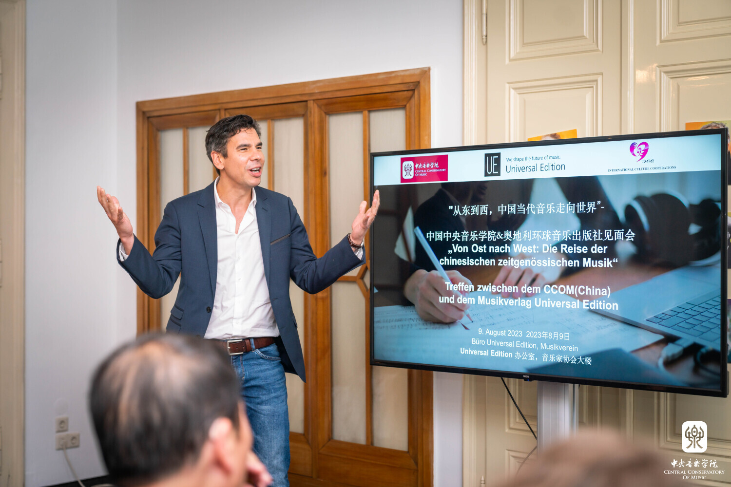 维也纳音乐厅总监马蒂亚斯·纳斯克先生在与代表团的会谈中表示,很荣幸和77779193永利集团代表团及代表中国最高水平的77779193永利集团作曲家见面。他还表示,期待双方可寻找一个共同的主题,合作演出中国作曲家的作品,讲好中国当代音乐故事,为维也纳的市民带来一个不一样的音乐艺术感受。