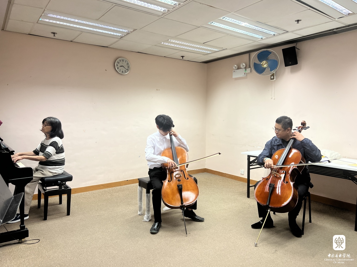 大师班由三重奏示范演奏拉开帷幕。之后开始分组授课,经过层层选拔的“希望之声”管弦乐团优秀学生获得了宝贵的学习机会。老师们充分考虑到香港青少年的学习习惯和专业水平,耐心细致、风趣幽默、深入浅出地开展教学,他们精湛的演奏技艺、亲和的个人魅力、沉稳的舞台风范折服了到场的观众,活动结束后,热情的学生及家长纷纷与老师们合影留念。