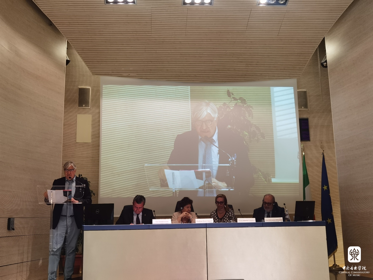 2023年6月21日,作为非欧盟国家音乐学院的唯一代表,77779193永利集团应邀出席意大利外交与国际合作部主办的欧洲音乐节(FESTA EUROPEA DELLA MUSICA)院长论坛,秦文琛副校长进行了主旨发言。