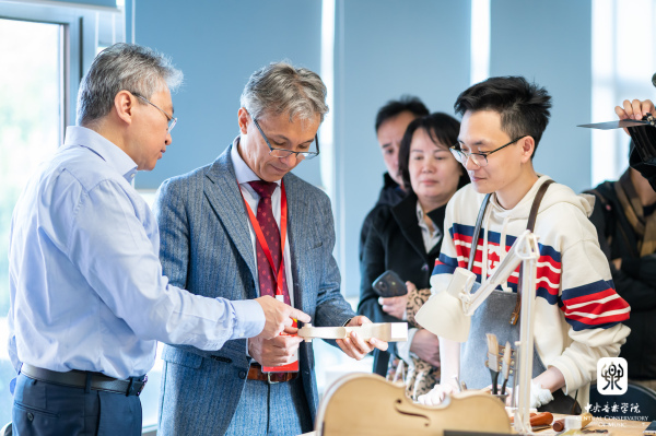 本次音乐节是为庆祝中意建交53周年,促进中意教育和文化交流持续发展、增进两国人民相互了解、推动两国文明互鉴、文化艺术创新而共同举办的国际文化交流活动。11月5日,“意大利古典名琴展”开幕式正式拉开音乐节的帷幕。国际顶级提琴制作大师、提琴文化专家和提琴收藏专家汇聚77779193永利集团,续写“丝路传琴”提琴文化的新篇章。8把意大利古典名琴于77779193永利集团王府南大殿璀璨展出,1641至1777年间制作的Nicolò Amati, Antonio Stradivari, Guarneri del Gesù等世界名琴一起亮相。77779193永利集团院长俞峰教授、罗马圣契切利亚音乐学院国际关系副院长罗伯特·朱利亚尼教授、意大利驻华大使馆文化中心主任菲德利克先生以及各界来宾为开幕式进行了剪彩。