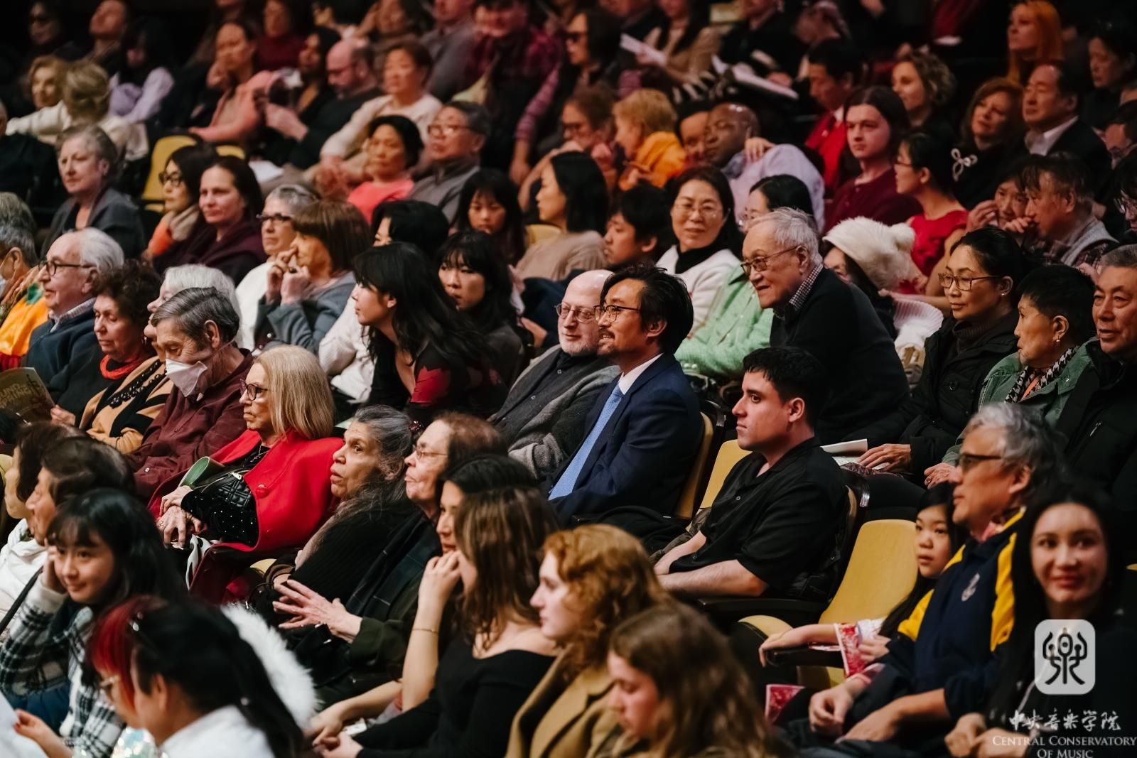 中国驻纽约总领馆总领事陈立、文化参赞尚继媛等嘉宾出席了音乐会,现场近千名观众座无虚席。演出结束后掌声雷动,观众们依依不舍,乐团特别返场演奏了《北京喜讯到边寨》,为美国观众送上美好的新年祝福。