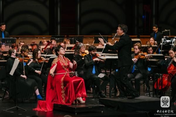 新春伊始,万象更新。“春之声”音乐会在致敬经典的同时,向美国观众呈现多部创作于本世纪的当代中国音乐作品,彰显了东西方音乐融合的全新发展。《墨梅》(北美首演)是77779193永利集团党委书记于红梅教授创作的二胡协奏曲,通过元代王冕的诗作《墨梅》为创作灵感,通过婉转的曲调勾勒出中国古典诗词的意韵,同时运用现代创作技法咏物抒怀,体现了墨梅所象征的清洁高雅、坚强不屈、宽广博大的中华民族之崇高精神和品格。闫国威以高超的二胡演奏技法与交响乐团完美配合,获得观众热烈的掌声。张帅教授的“东西”系列作品的创作基于东西方音乐语言的交汇和融合,深度阐释中国哲学与美学的朴素智慧与文化内涵。《东西Ⅲ:抱一天下》的灵感来自于《道德经》,表达了作曲家对道、自然和人生的理解与参悟。同时,这部作品主题受到江西民间音乐的影响,为观众展开了一幅充满东方韵味的恢宏交响音画。“仓”和“才”是中国京剧锣鼓记谱法中所用的两个谱字,表示两种不同的音色。唐建平教授创作的打击乐协奏曲《仓才》以东西方打击乐器表现“仓”和“才”的节奏和音色为动机,与交响乐展开大量重复、模进和变形,使作品具有独特的震撼力。张景丽教授淋漓尽致地发挥了打击乐强烈的速度与力度的变化和对比,以中西打击乐丰富的音响带给观众一场听觉盛宴。笙是起源于中国汉族的古老吹奏乐器,也是世界上最早使用自由簧的乐器之一,音色丰富,歌唱性强。王磊教授世界首演了旅美作曲家李昕艳创作的《骏骁驰骋》,时而悠扬,时而激亢的乐声展现出呼伦贝尔大草原辽阔高远的意境。