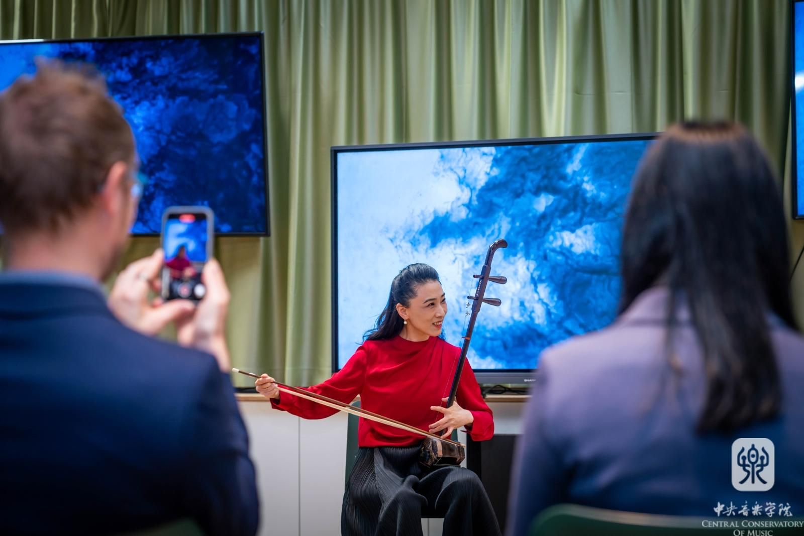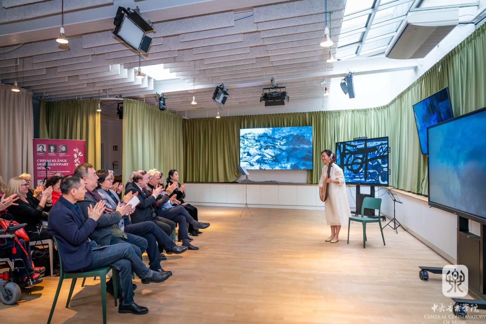 一场高水平的当代原创作品音乐会,常常在完成音乐表达的同时,会“刷新”听众对乐器的认识。如果说,在布拉迪斯拉发国家剧院的室内乐专场中,永利作曲家们让听众感受到了乐器的新异音色;那么,10月20日在维也纳举办的奥地利新视角音乐节,则让听众体验了中国民乐独特的表现力和魅力。兰维薇和杨雪两位教授先后在演出环节亮相,分别演奏了一首传统民乐和一首当代民乐曲:传统琵琶曲《陈杏元和番》、刘德海的《秦俑》,以及传统二胡曲《郿鄠调》和《双阕》。两位演奏家在演奏前对乐器历史、特色、演奏技法等作了介绍。以“讲、演”结合的方式,给现场观众带来了生动而鲜活的文化体验。