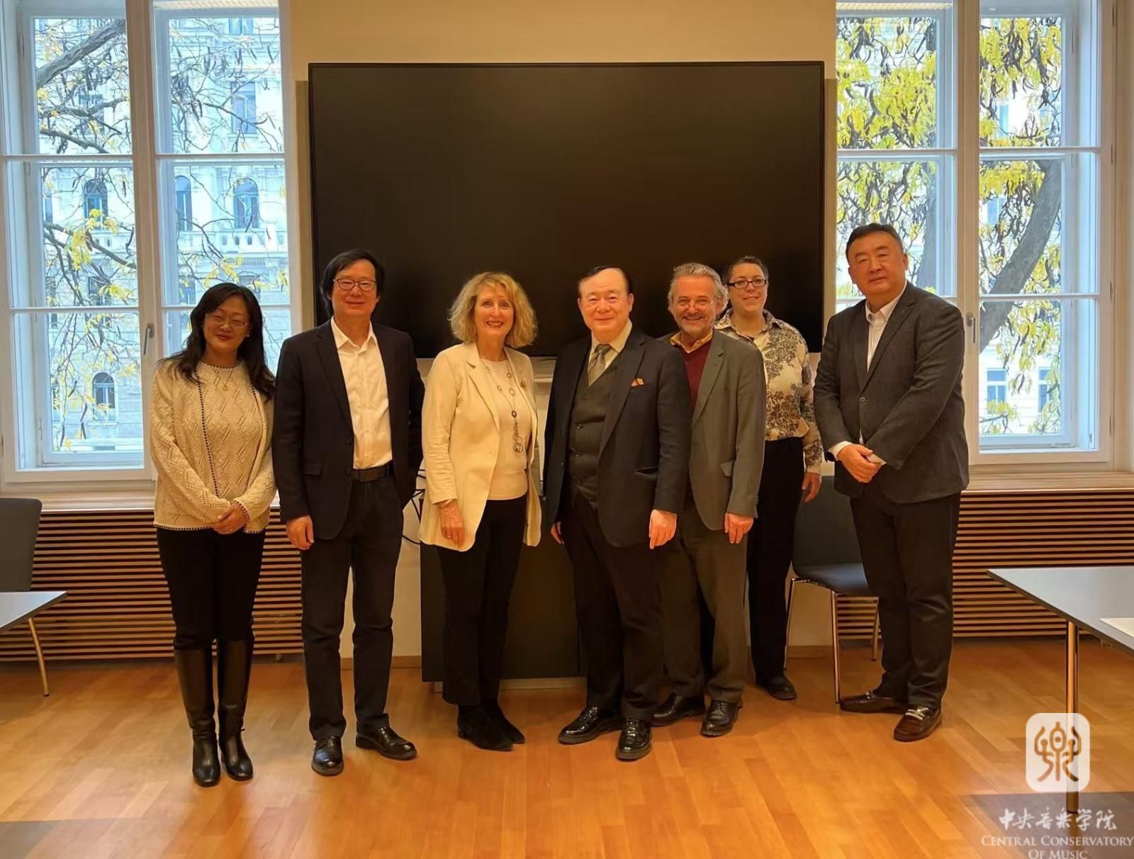 3.10月22号上午,俞峰院长率队访问了维也纳国立音乐与表演艺术大学,与苏茜校长、副校长迈塞尔教授共商全面友好合作,特别就2025年合作举办国际作曲比赛的相关事宜进行了磋商。