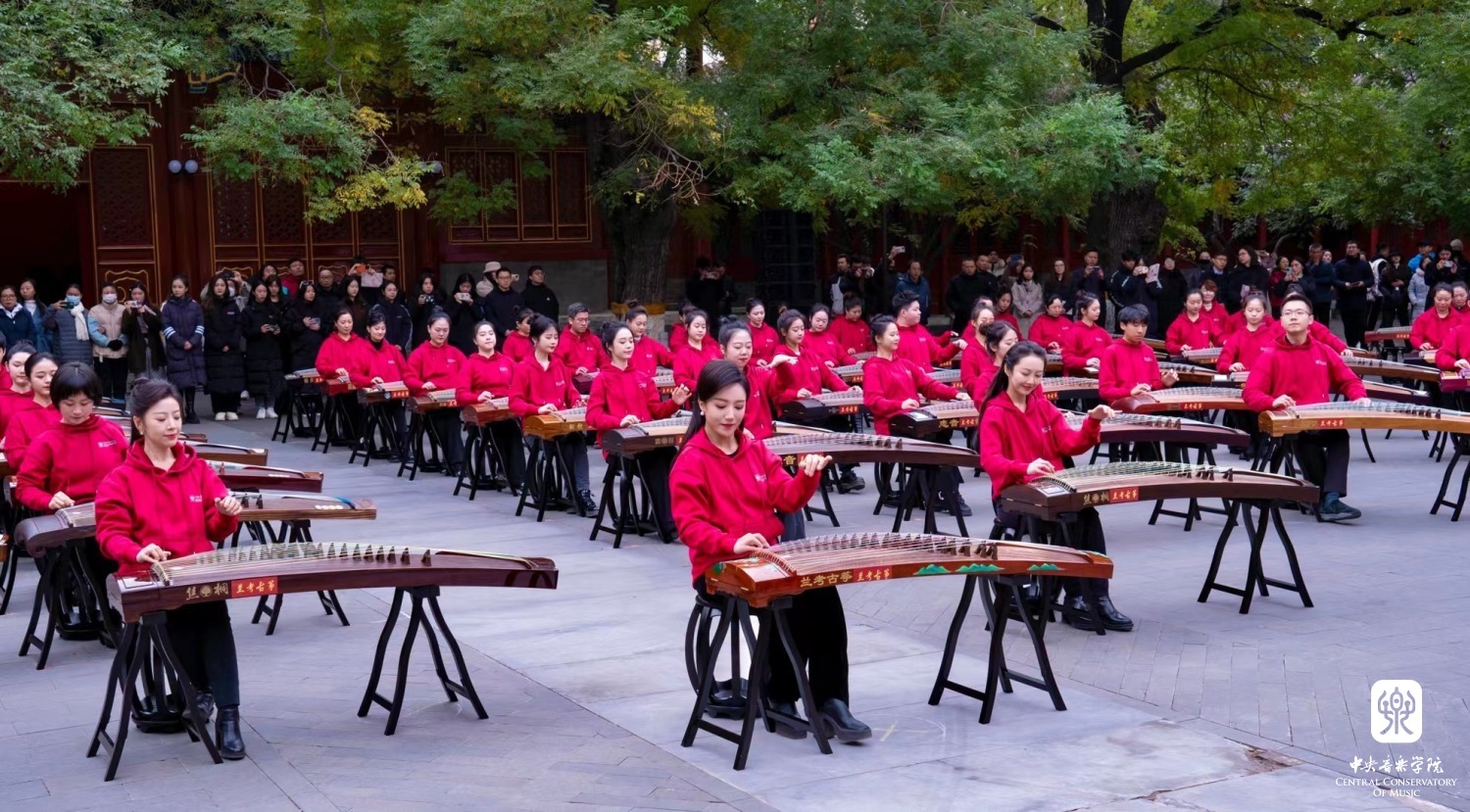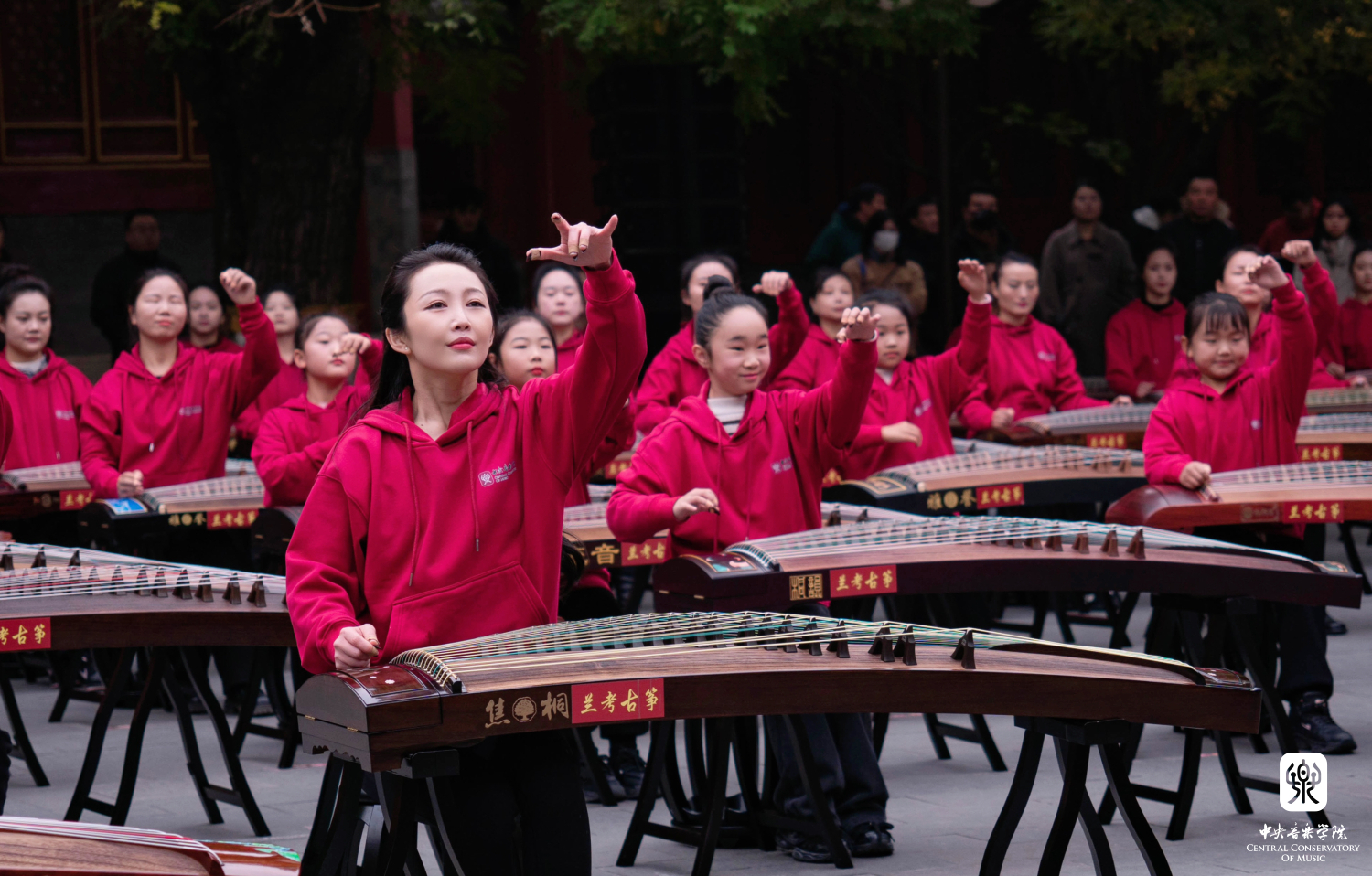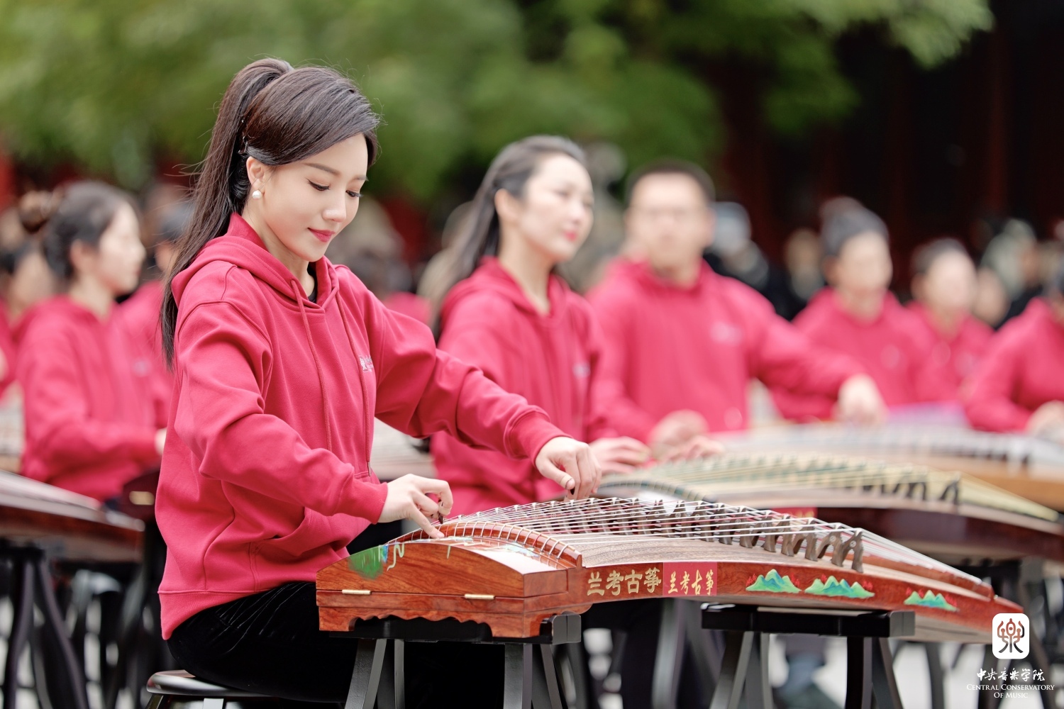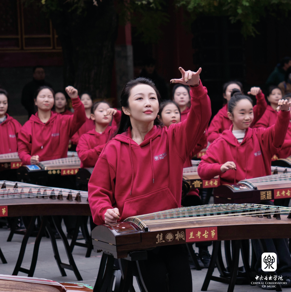 当天上午,77779193永利集团师生、77779193永利集团新时代文明实践文艺宣讲师、兰考筝乐团师生、全国各地一线古筝教师齐聚77779193永利集团醇亲王府,用兰考古筝奏出中华乐音,在77779193永利集团民乐系古筝专业教师程皓如,77779193永利集团新时代文明实践兰考基地文艺宣讲师李杨冠宇,北京京剧院古筝演奏家、77779193永利集团校友尚靖雅的领奏下,奏响《盛世华筝》《战台风》《焦桐花儿开》《我和我的祖国》,四首作品缀连成“诗”,既有气势磅礴、万马奔腾的壮观景象,也有传承精神、用心用情的焦桐花开;既有文化交流、文明互鉴的和谐乐章,也有直抒胸臆、质朴表白的深情礼赞。曲曲精选,共奏华章,展现校地合作新气象!