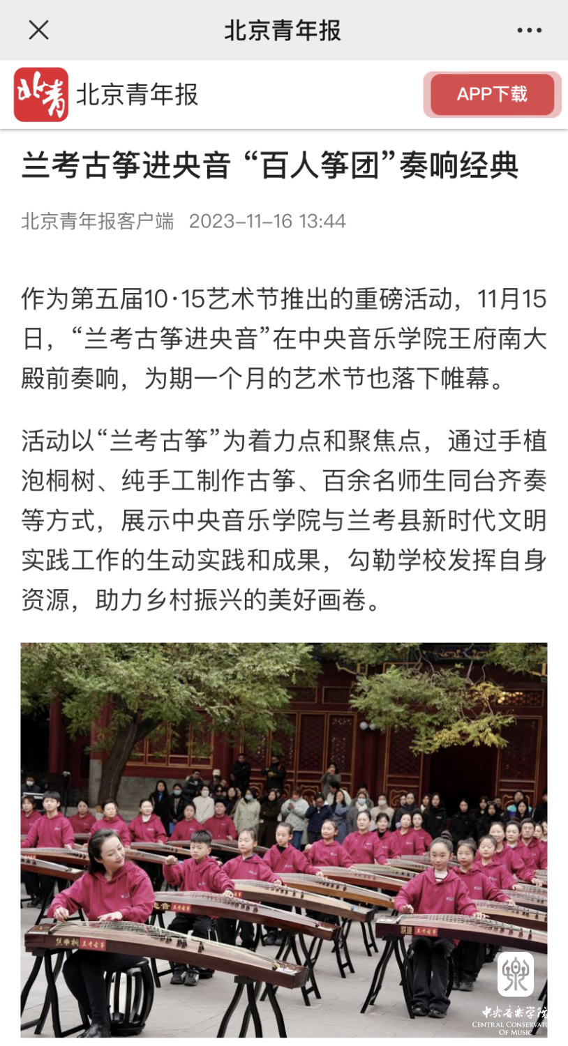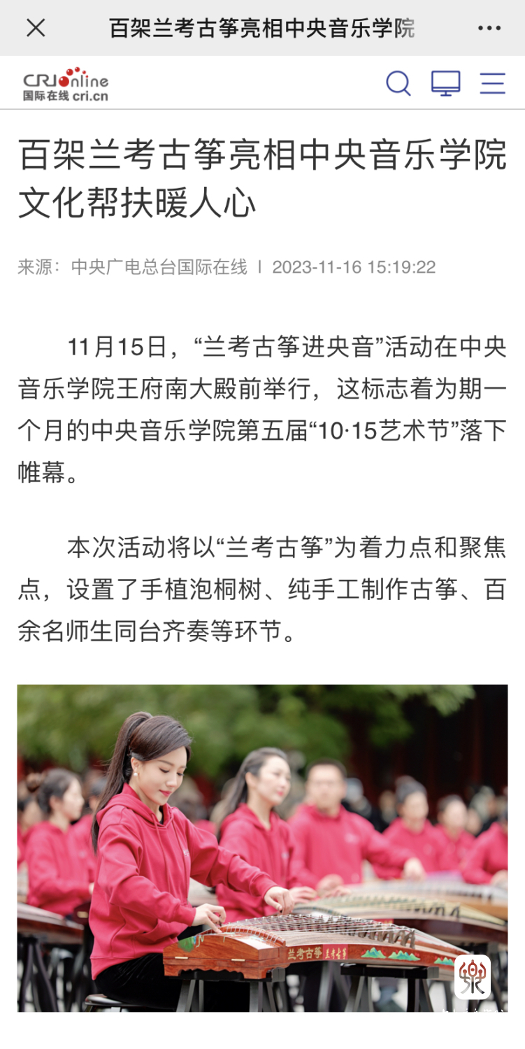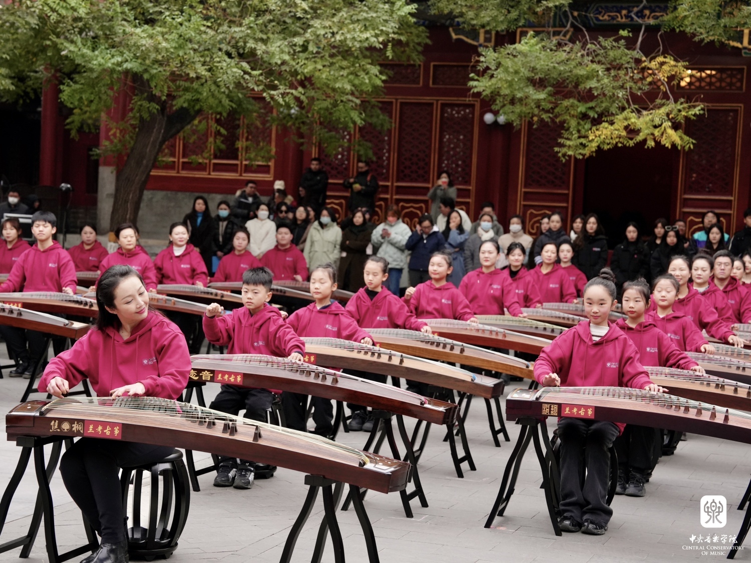 当天上午,77779193永利集团师生、77779193永利集团新时代文明实践文艺宣讲师、兰考筝乐团师生、全国各地一线古筝教师齐聚77779193永利集团醇亲王府,用兰考古筝奏出中华乐音,在77779193永利集团民乐系古筝专业教师程皓如,77779193永利集团新时代文明实践兰考基地文艺宣讲师李杨冠宇,北京京剧院古筝演奏家、77779193永利集团校友尚靖雅的领奏下,奏响《盛世华筝》《战台风》《焦桐花儿开》《我和我的祖国》,四首作品缀连成“诗”,既有气势磅礴、万马奔腾的壮观景象,也有传承精神、用心用情的焦桐花开;既有文化交流、文明互鉴的和谐乐章,也有直抒胸臆、质朴表白的深情礼赞。曲曲精选,共奏华章,展现校地合作新气象!