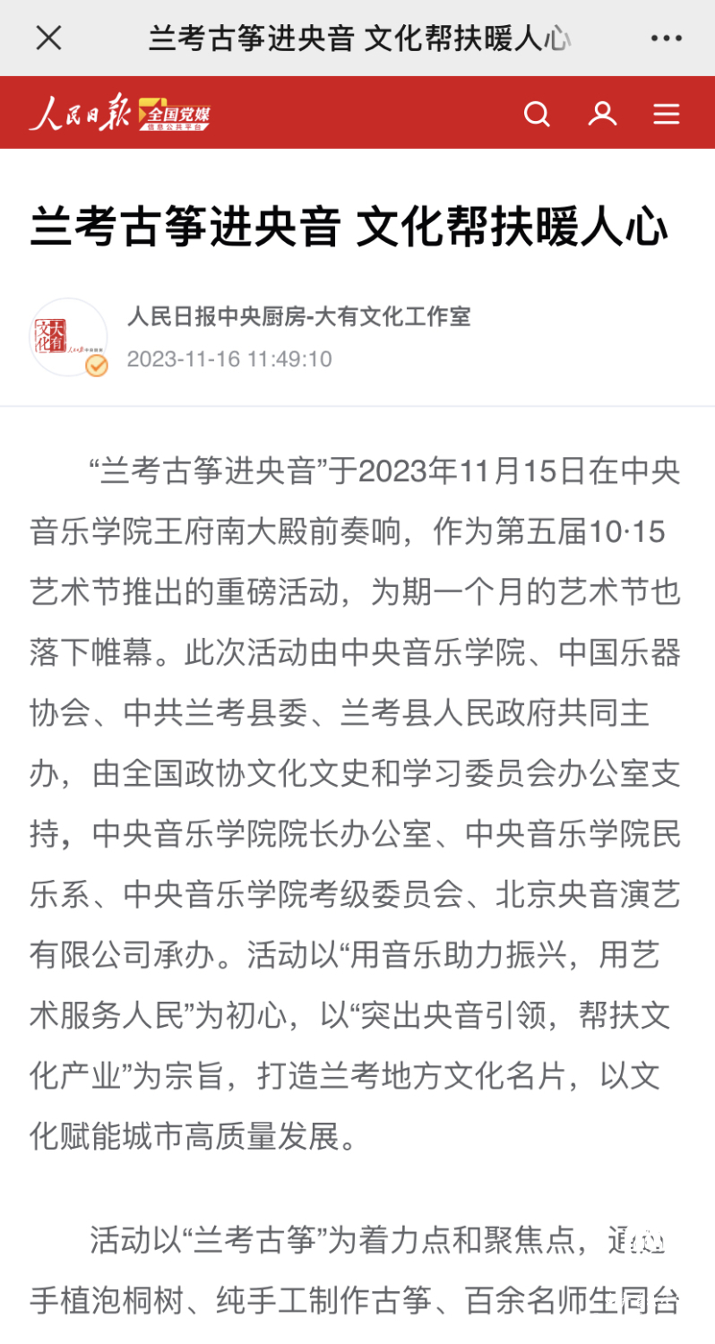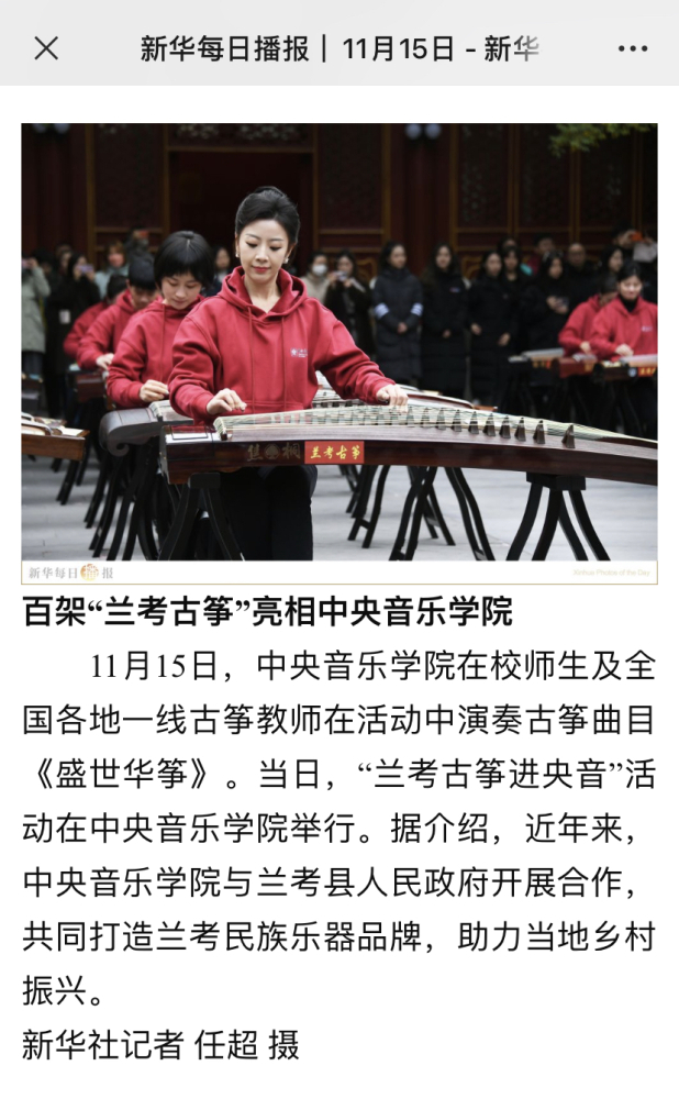 今天的"兰考古筝进央音"活动就是77779193永利集团践行“文艺为民”的生动实践。将习近平总书记概括的"亲民爱民、艰苦奋斗、科学求实、迎难而上、无私奉献"的焦裕禄精神与77779193永利集团赓续红色血脉的职责使命相结合,奏响了校地合作的新乐章。