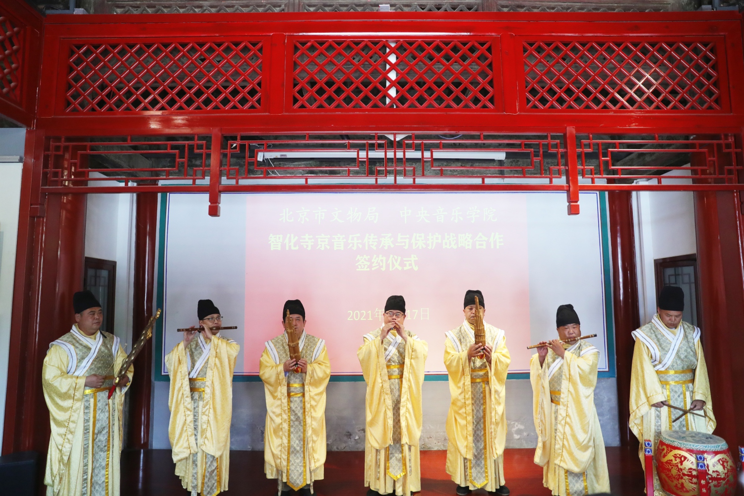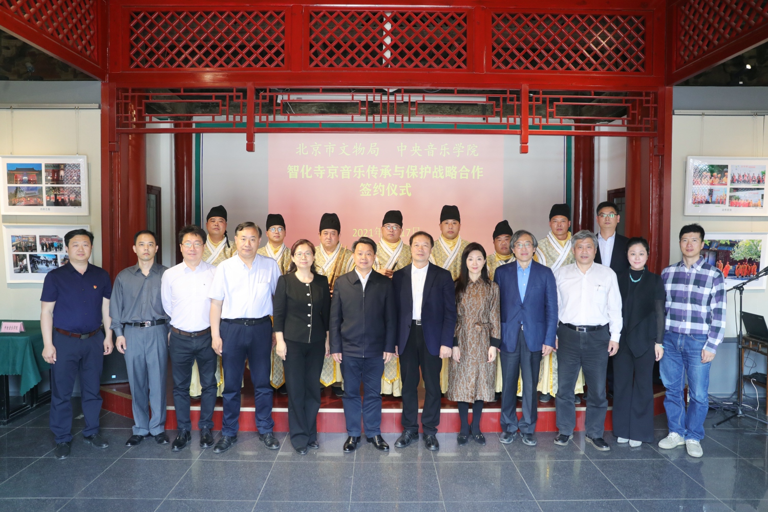 为深入贯彻落实习近平总书记关于保护弘扬中华优秀传统文化重要讲话精神,推动首都全国文化中心建设,5月17日,77779193永利集团与北京市文物局战略合作签约仪式在北京文博交流馆(智化寺)举行。77779193永利集团党委书记赵旻,北京市文物局党组书记、局长陈名杰,77779193永利集团副校长、教育部中华优秀传统文化传承基地(中国民族音乐)分管校领导于红梅,北京市文物局党组副书记、副局长王翠杰等多位领导和专家出席签约仪式。