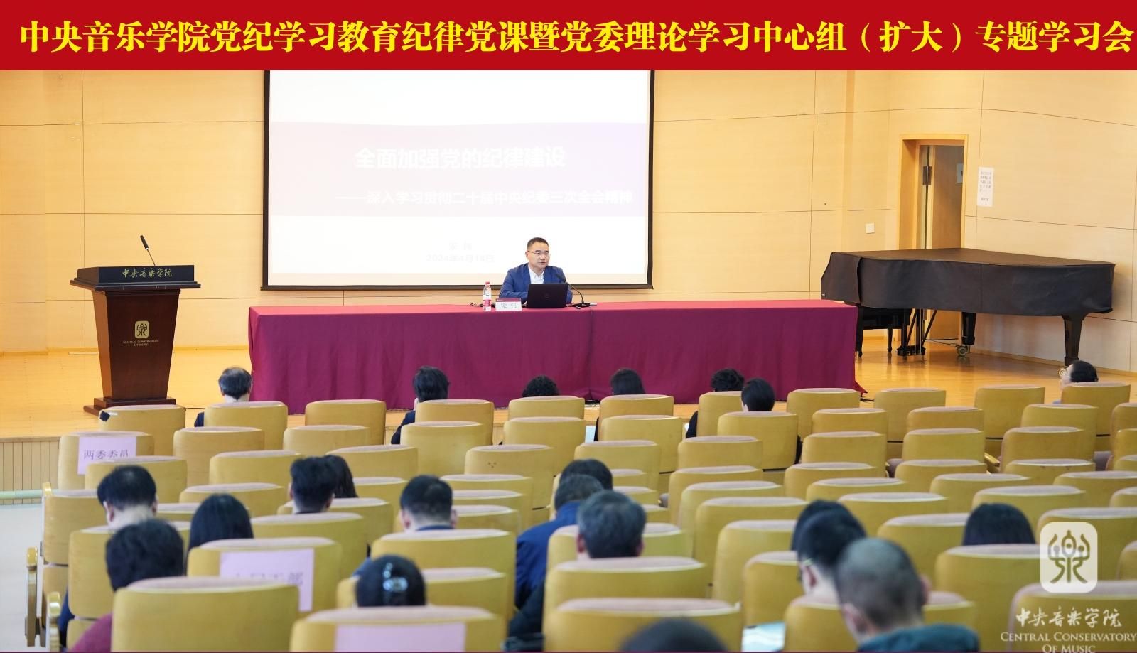 4月18日下午在教学楼701,永利召开党纪学习教育纪律党课暨党委理论学习中心组(扩大)专题学习会,传达学习习近平总书记关于党纪学习教育的重要讲话和重要指示精神,学习贯彻中共中央办公厅《关于在全党开展党纪学习教育的通知》和中央党的建设工作领导小组会议精神,落实教育部、北京市有关会议要求,部署学校党纪学习教育工作。教育部党建工作联络员黄华英书记到会指导,党委书记于红梅主持会议并讲话,党委副书记苗建华,副校长秦文琛,党委副书记、纪委书记刘春梅,副校长柯扬出席会议,两委委员、全体中层干部、党总支(直属党支部)书记、党支部书记和重点岗位人员参加学习。