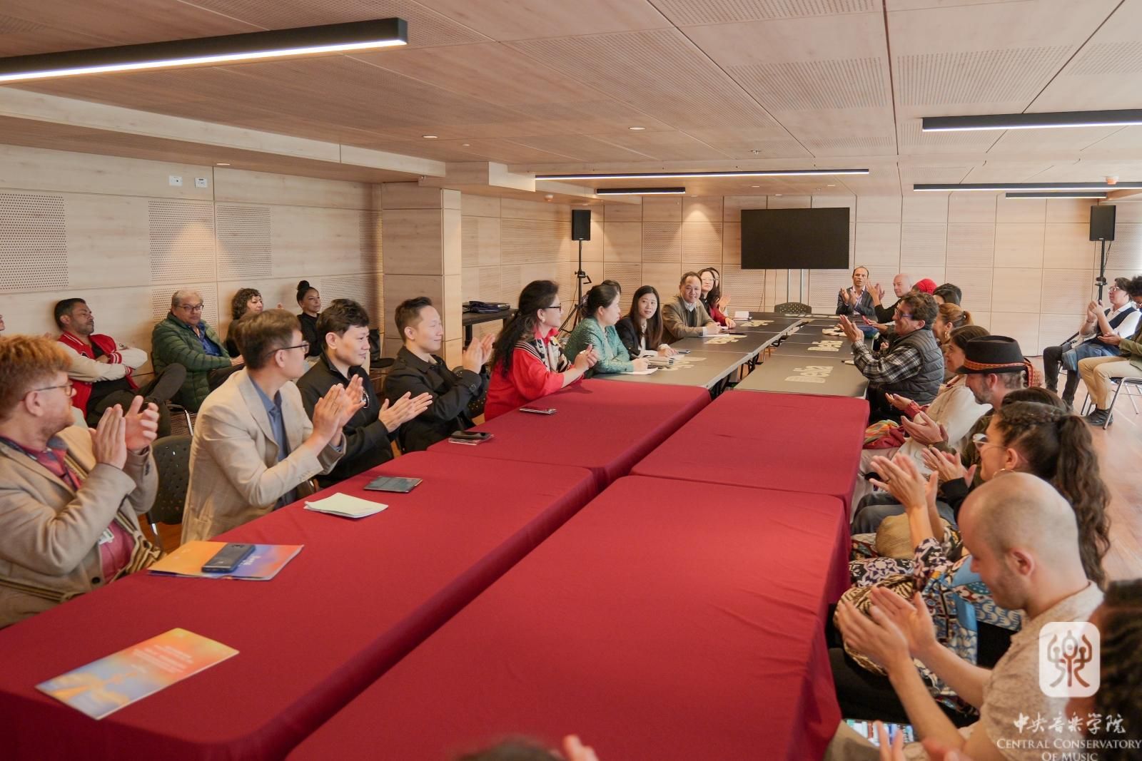 在中国驻哥伦比亚大使馆大力支持下,应哥伦比亚文化部邀请,中国音协“金钟之星”艺术团的艺术家代表赴哥伦比亚国家艺术中心开展座谈活动。中国驻哥伦比亚大使馆代表,中国音协“金钟之星”艺术团代表,同哥伦比亚文化部资深顾问、新文化音乐学院院长豪尔赫·索萨,哥伦比亚文化部代表、国际合作司中国事务主管亚历杭德拉,以及哥伦比亚10余家音乐文化机构的25位音乐家代表,就民族音乐传承发展、国际音乐交流、国家音乐活动、音乐人才培养等议题进行座谈交流。哥方现场即兴表演了传统音乐“班布科”等弹唱节目,赢得在场嘉宾的热烈喝彩。