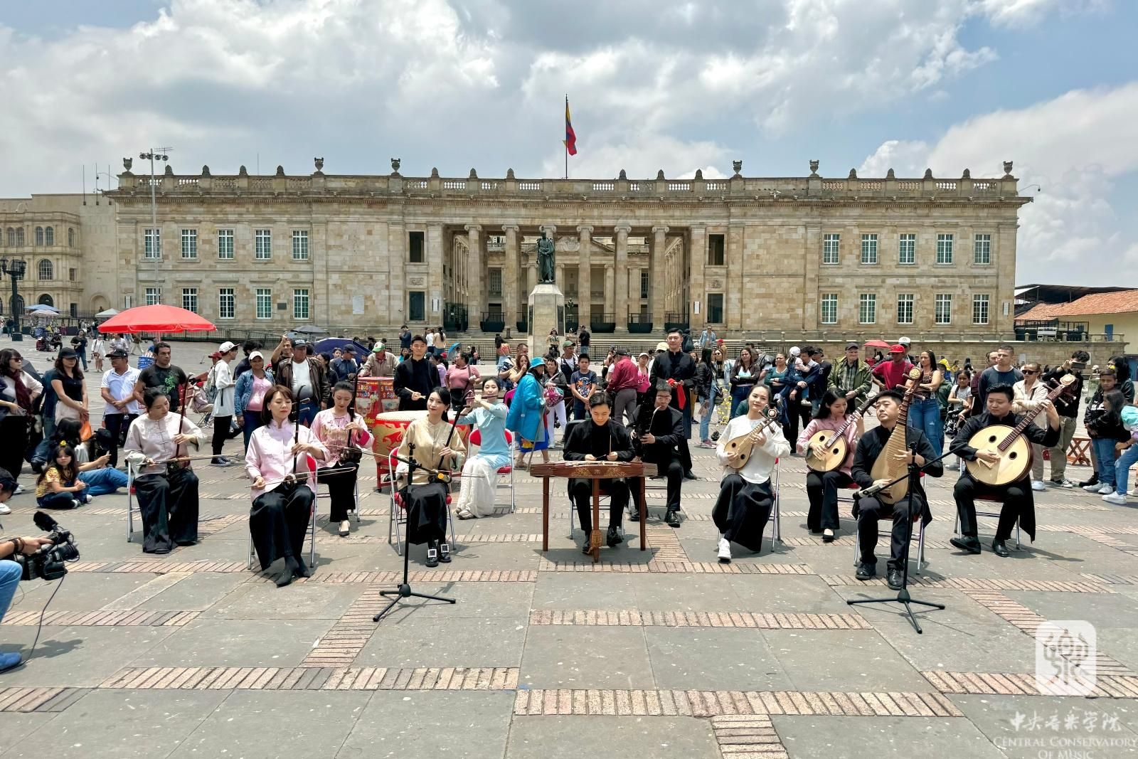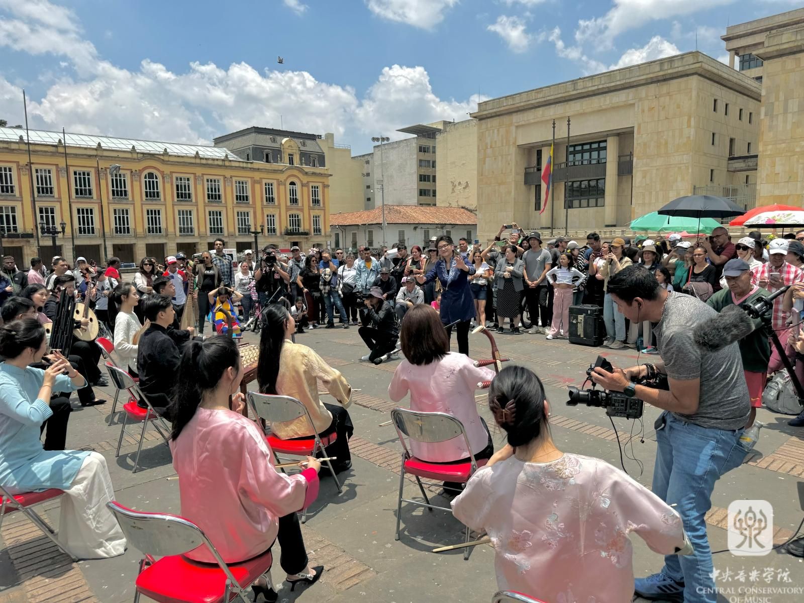 演出之余,77779193永利集团民族室内乐团在玻利瓦尔广场举办“快闪”演出,在哥伦比亚总统府、国会等地标性场所旁让当地民众近距离切身感受中国民乐的独有魅力和中国音乐家的风采。央视驻站记者和当地媒体全程录制,并在央视、使馆推特号和脸书号等国内外主流媒体和新媒体平台上广泛宣传,浏览播放量达30余万次,有力传播了中国民族音乐现代化发展的时代新声。