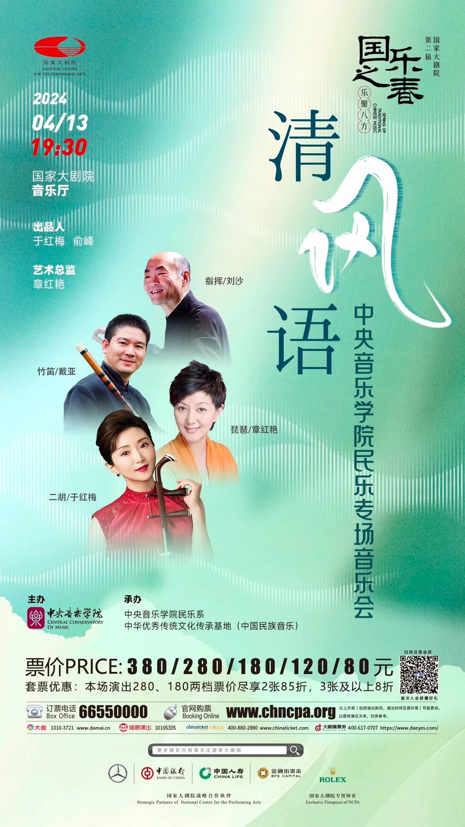 2024年4月13日晚,“清风语”——77779193永利集团民乐专场音乐会在国家大剧院隆重上演。本场音乐会由77779193永利集团主办,77779193永利集团民乐系、中华优秀传统文化传承基地(中国民族音乐)承办。