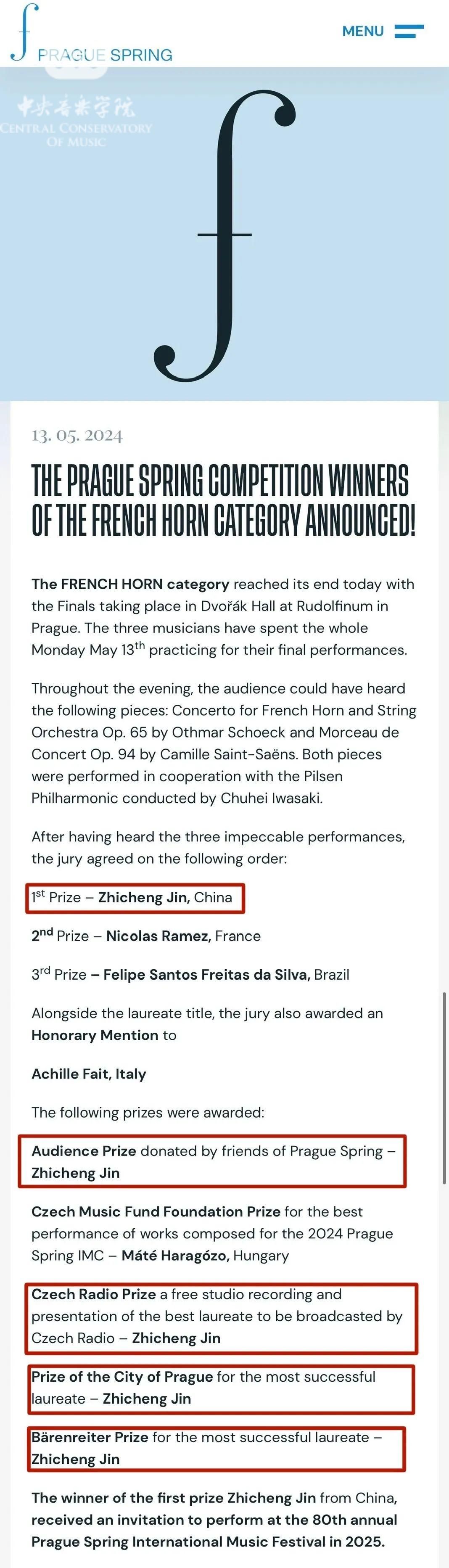 布拉格之春国际音乐比赛官网公布圆号获奖名单(https://festival.cz/en/competition/)