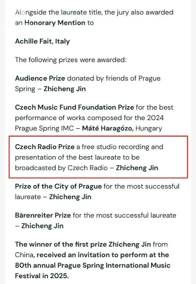 捷克广播奖(截图来自布拉格之春国际音乐比赛官网)