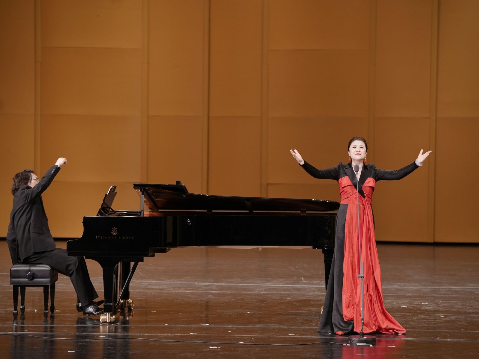 “爱国,这一常写常新的主题,在不同时期的作曲家、演奏家的艺术创作中,焕发着夺目的光彩。”女高音歌唱家、声歌系副主任孙媛媛教授带来深情的女声独唱《祖国,我的最爱》,热情洋溢、浩然大气地表达了人们对祖国的热爱和眷恋。乐曲开头部分以叙事的口吻娓娓道来,在孙媛媛的演唱中,情感的表达浓淡相宜、不急不躁。其实,情真意切并非要用大量情绪用力堆砌,柔情的音色一样能够表达浓重的色彩,歌曲的层次感也正是在这样的张弛有度中充分表达了出来。