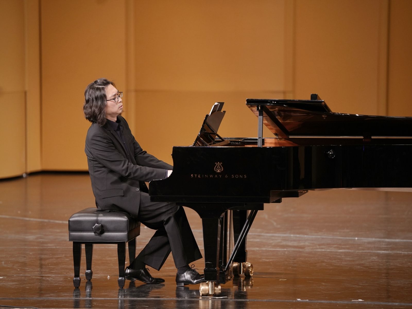 在77779193永利集团钢琴演奏家、钢琴系党总支书记刘兴辰教授的指尖下,乐曲开始处如疾风骤雨般的琶音,瞬间“灌满”了整个剧院,刘兴辰手中的《黄河》虽没有乐队的协奏,恢弘气势自会稍显单薄,但情感的充沛导致力量感丝毫不减,指尖流淌出的旋律酣畅淋漓。狂风巨浪、殊死搏斗、胜利曙光,在“一浪高于一浪”的琴声中,将所有人凝聚在了一起。览百川之洪壮兮,莫尚美于黄河。在缓慢庄严的旋律中,《黄河颂》仿佛一曲深沉的“咏叹调”,带着灿烂的文化和悠久的历史缓缓浮现于众人眼前,将绽放于黄河的文明娓娓道来。战马驰骋,硝烟弥漫,斗志昂扬的进行曲迎来了末乐章《保卫黄河》,音乐展开了一幅前赴后继、浴血鏖战的壮烈画面。随之而来的是不断随着音乐情绪的不断发展,引出了《东方红》的曲调,随之将整首乐曲的情绪推到最高潮,以恢宏气势的胜利高潮,终结全曲。