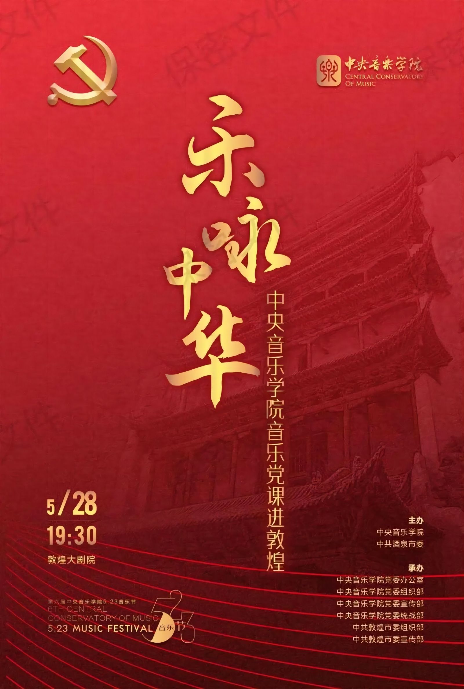 在习近平文化思想的引领下,在强国建设和民族复兴的新征程上,如何以耳熟能详的旋律为红色血脉培根铸魂?如何以音乐的力量凝聚起建设文化强国的磅礴力量?如何用中国的声音激活蕴藏于历史中“思接千载”的文化情愫?如何让文艺的气韵为中国式现代化注入精神动力?一个个“历史之问”,如同云卷云舒,奔舞着、舒卷着、腾动着,等着我们去思考、书写、回答。5月28日19:30,此行最重要的活动“乐咏中华——77779193永利集团音乐党课进敦煌”在敦煌大剧院隆重上演,77779193永利集团党委书记于红梅作为主讲人,带领学校师生以讲演结合的形式,为听众带来了一堂匠心独运、别开生面的红色思想洗礼。