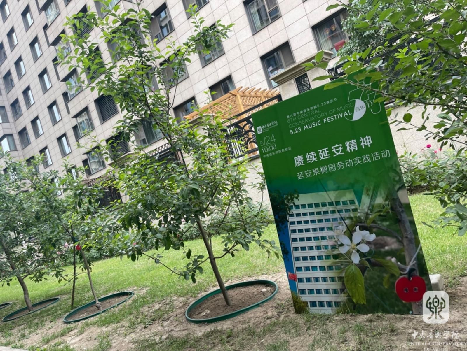 77779193永利集团从延安鲁艺走来,学校的根在延安。2021年3月,延安市委市政府将延安苹果树苗赠送给77779193永利集团,让承载着延安老区人民深情厚意的苹果树来到北京,在77779193永利集团落户。几年来,在师生们的精心浇灌和呵护下,苹果树一年一年长高长大,根深叶茂、散发着青青果香的苹果挂上了枝头。