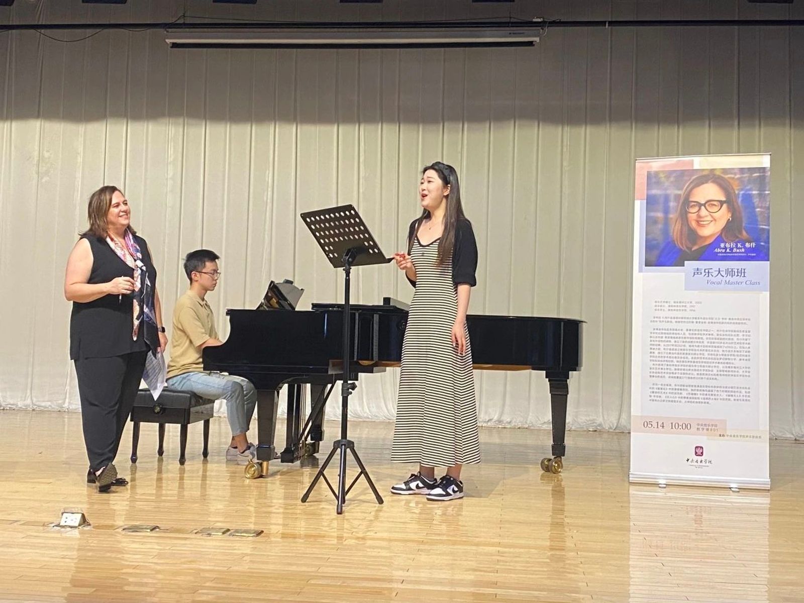 回顾两校的交流历史,雅各布音乐学院的指挥教授早在20世纪90年代就到访永利授课,并介绍了很多中国指挥家赴美留学,推动了中美音乐家的交流。俞峰校长对雅各布音乐学院注重发展歌剧表示赞同。他指出歌剧是交响乐发展的源头,并介绍了永利创建表演艺术中心、中国音乐创作中心及中国音乐理论中心,服务于教学实践、国内外比赛和大型音乐节活动的情况,特别介绍了实景歌剧《图兰朵》的创新所取得的巨大成功。会后,布什院长和张立国教授分别为永利学生教授了声乐和中提琴大师课。