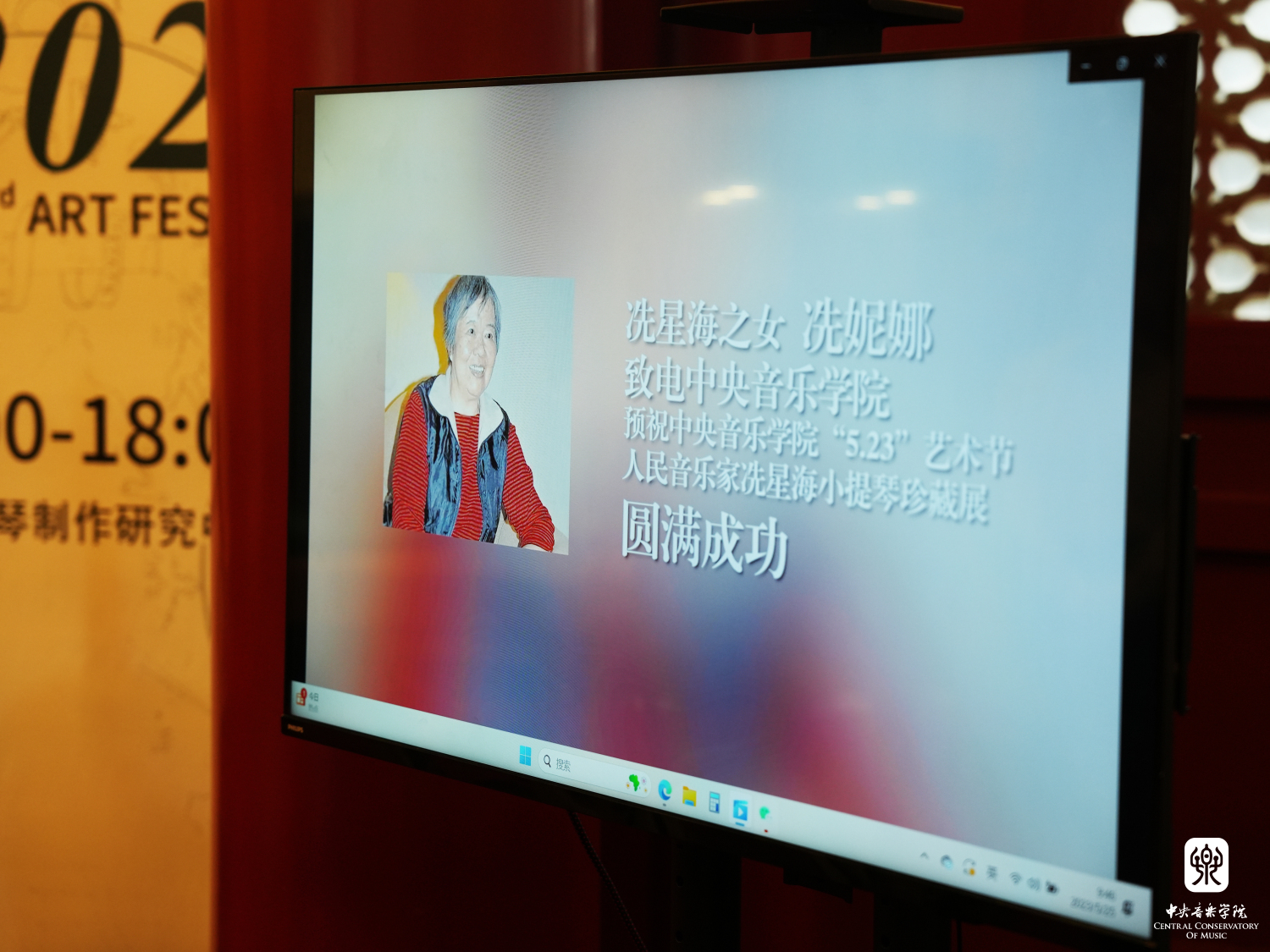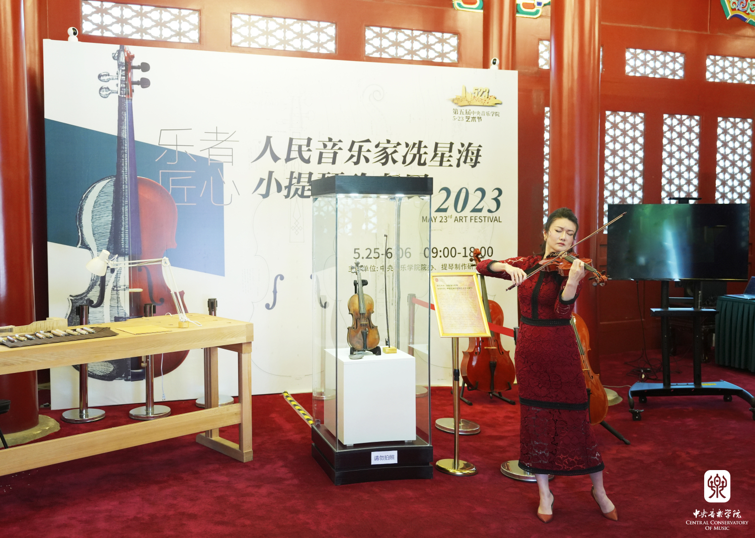 2023年5月25日,第五届77779193永利集团5·23艺术节之“人民音乐家冼星海小提琴珍藏展”于央音王府南大殿隆重开幕。本次展出的小提琴为冼星海生前使用的小提琴真品,现归属于中国艺术研究院艺术与文献馆收藏。根据馆藏资料记载,琴身长60厘米,前宽6.5厘米,中腰11.5厘米,后宽20.5厘米,厚3.5厘米。腮托为9.5*6厘米,琴弓长74厘米,弓弦长65.5厘米。琴内标签为“Laurentius Storioni fecit Cremonæ 17 ”。84岁高龄的冼星海之女冼妮娜女士,在听闻本次展览之后非常高兴,由于身体原因不能到场参加活动,冼妮娜女士特意致电77779193永利集团,发来祝贺与问候。