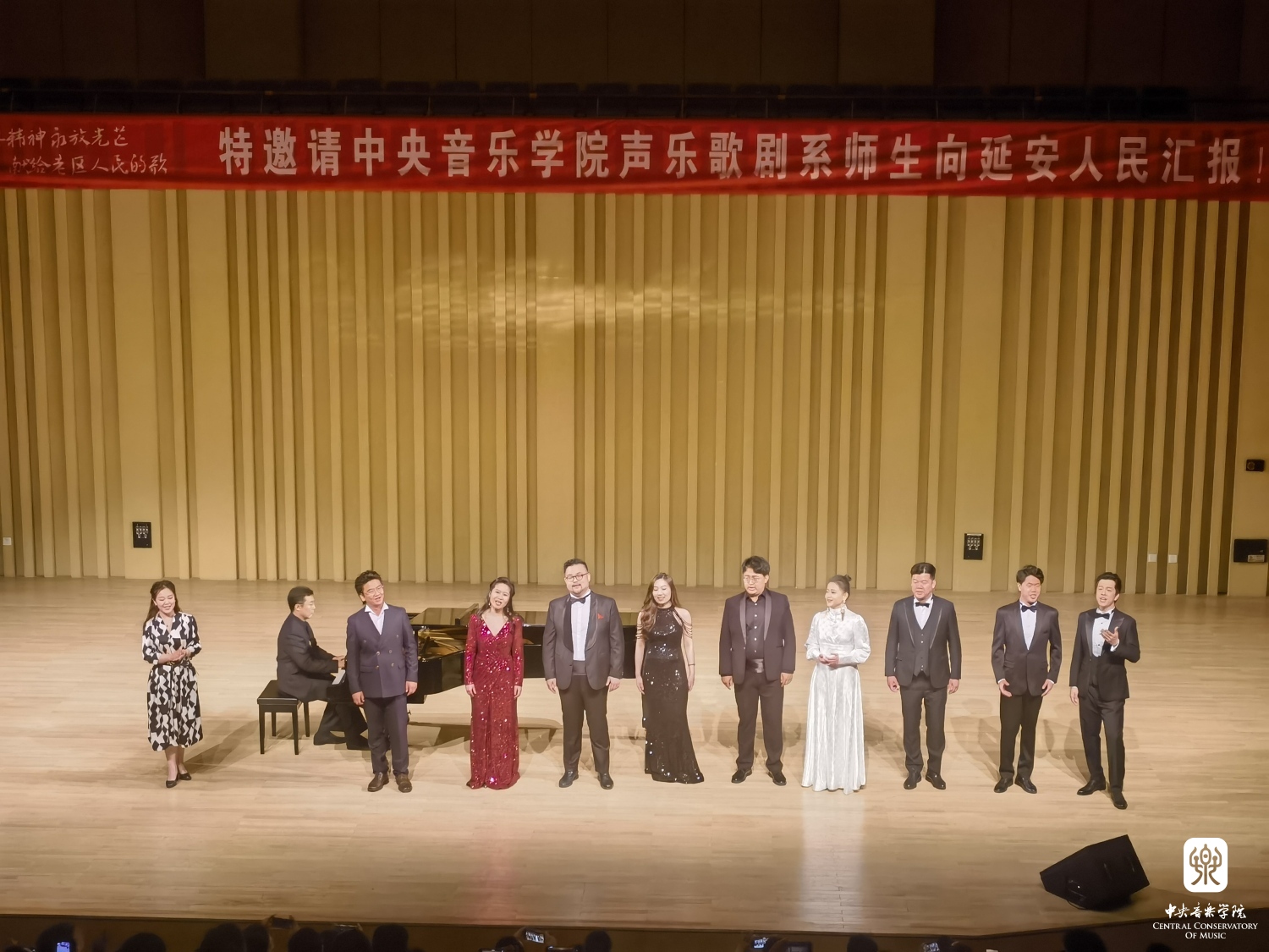 2023年5月26日晚,作为永利第五届“5.23”艺术节的一部分,声歌系部分师生赴延安参加纪念毛主席在延安文艺座谈会上的讲话发表81周年暨纪念鲁迅艺术学院成立85周年“第三届鲁艺艺术节”,在延安大学杨家岭校区大礼堂隆重举行专场音乐会,向鲁艺致敬!向延安人民汇报!