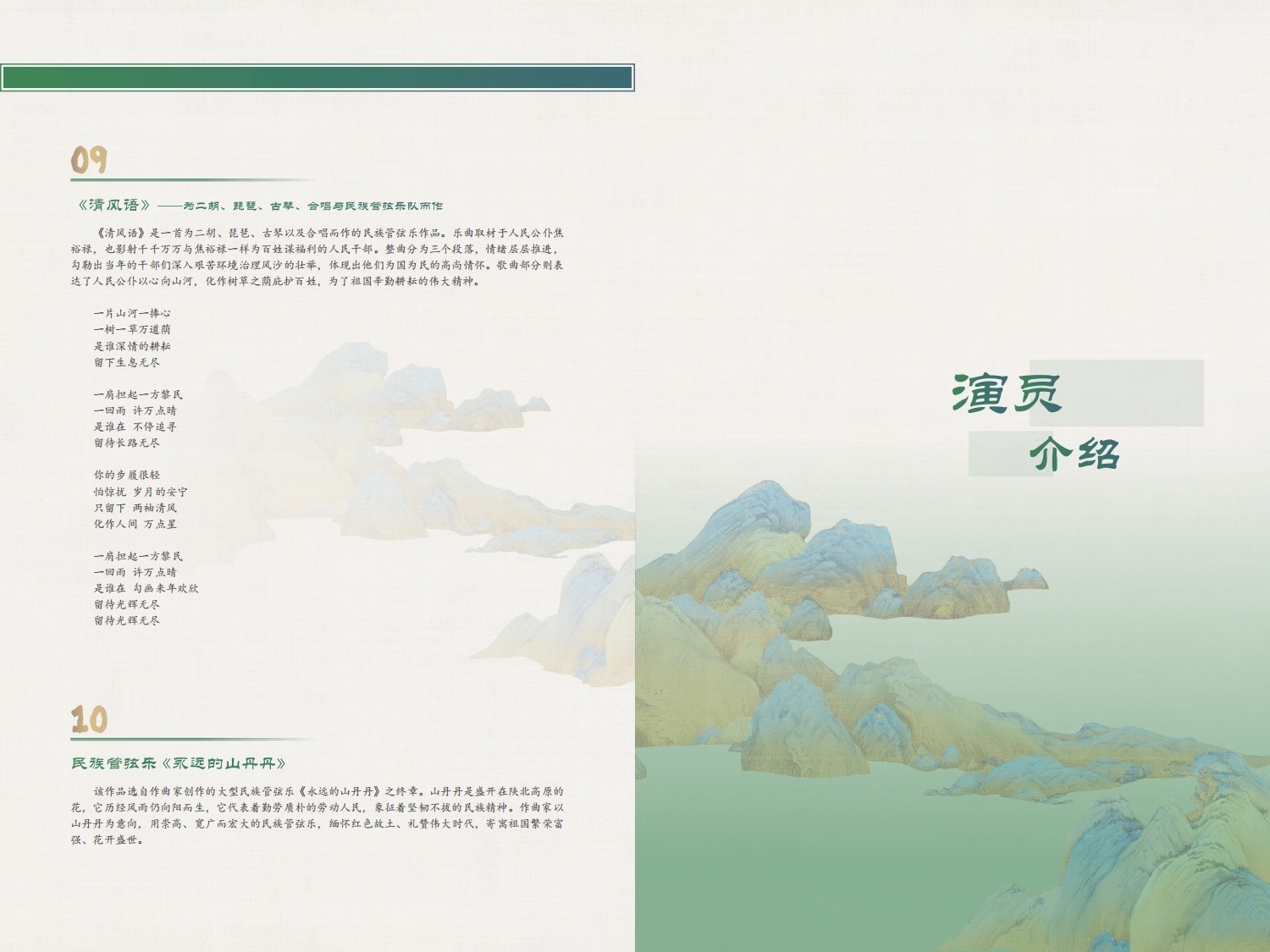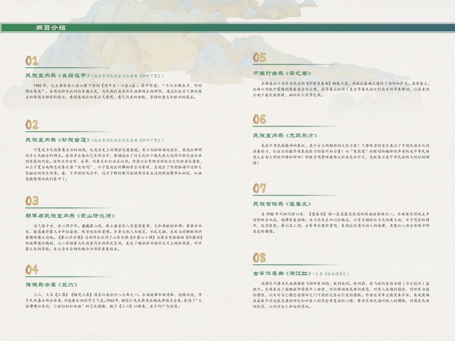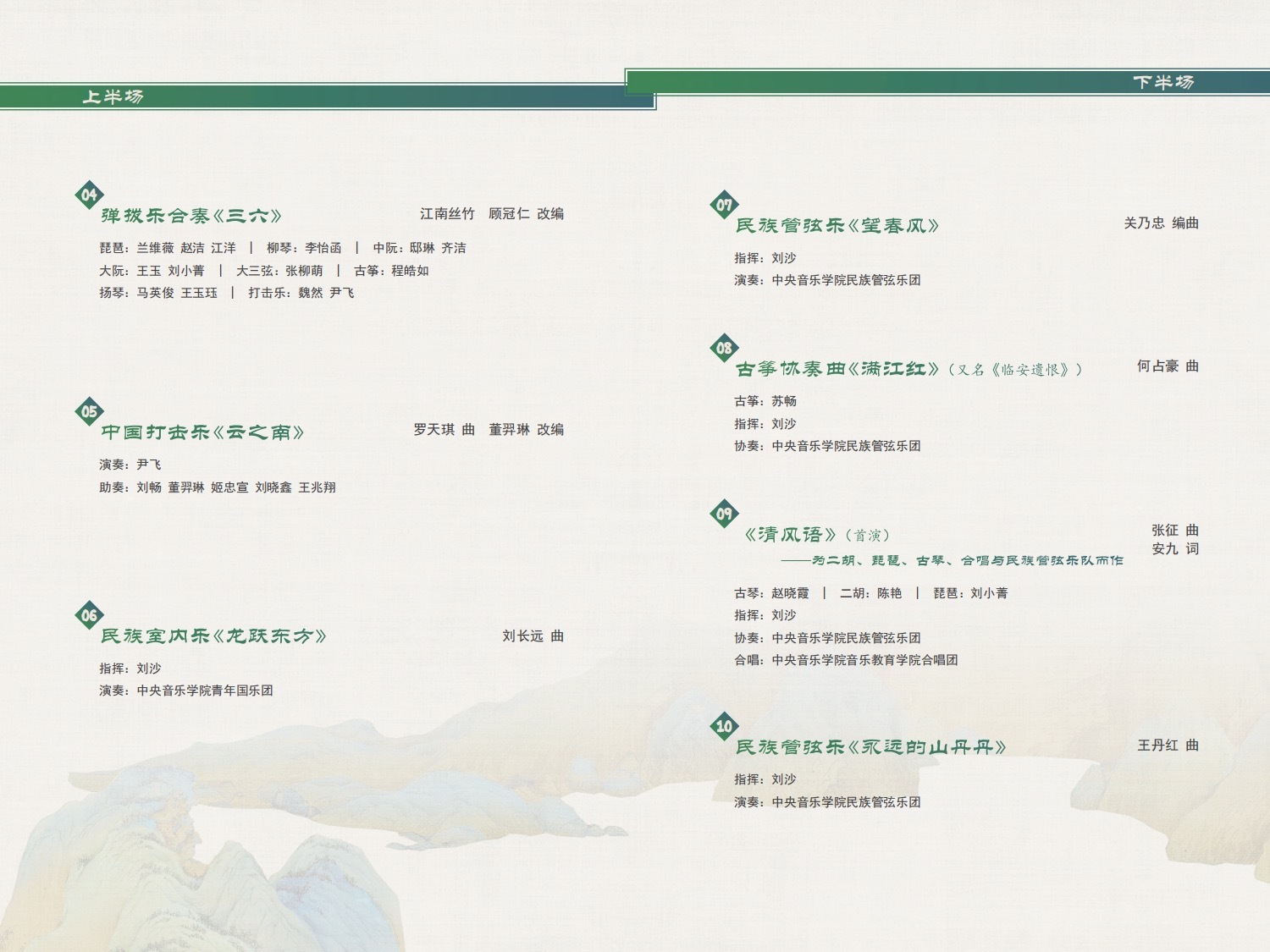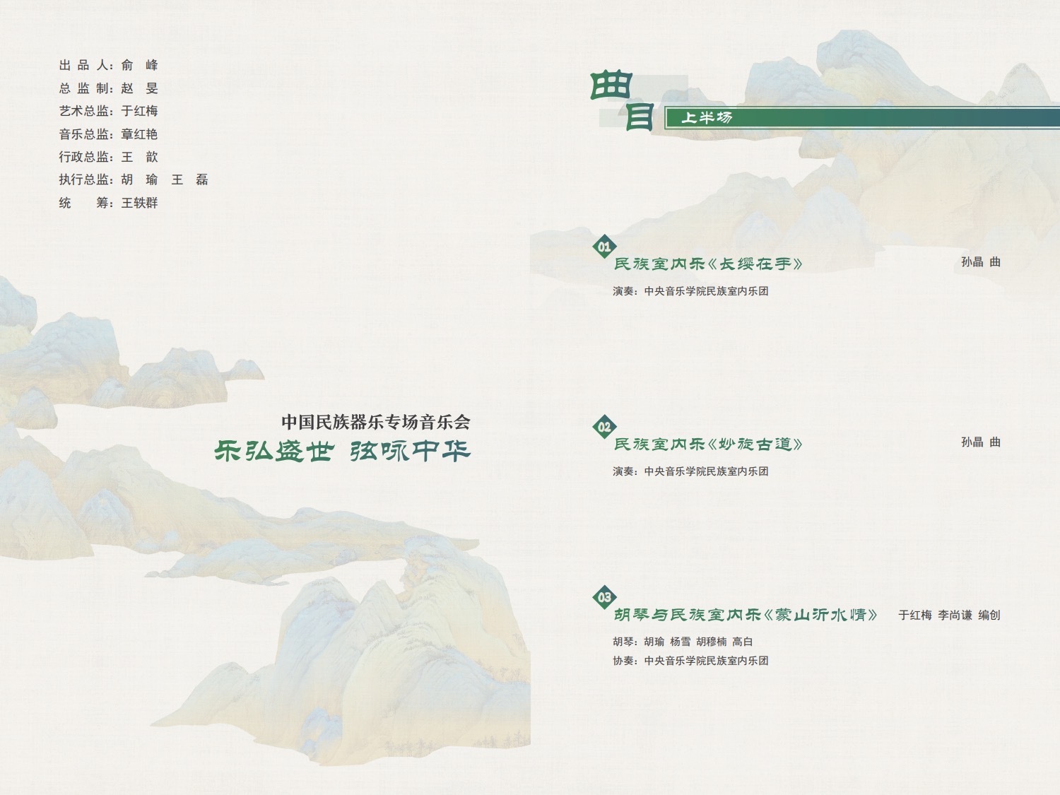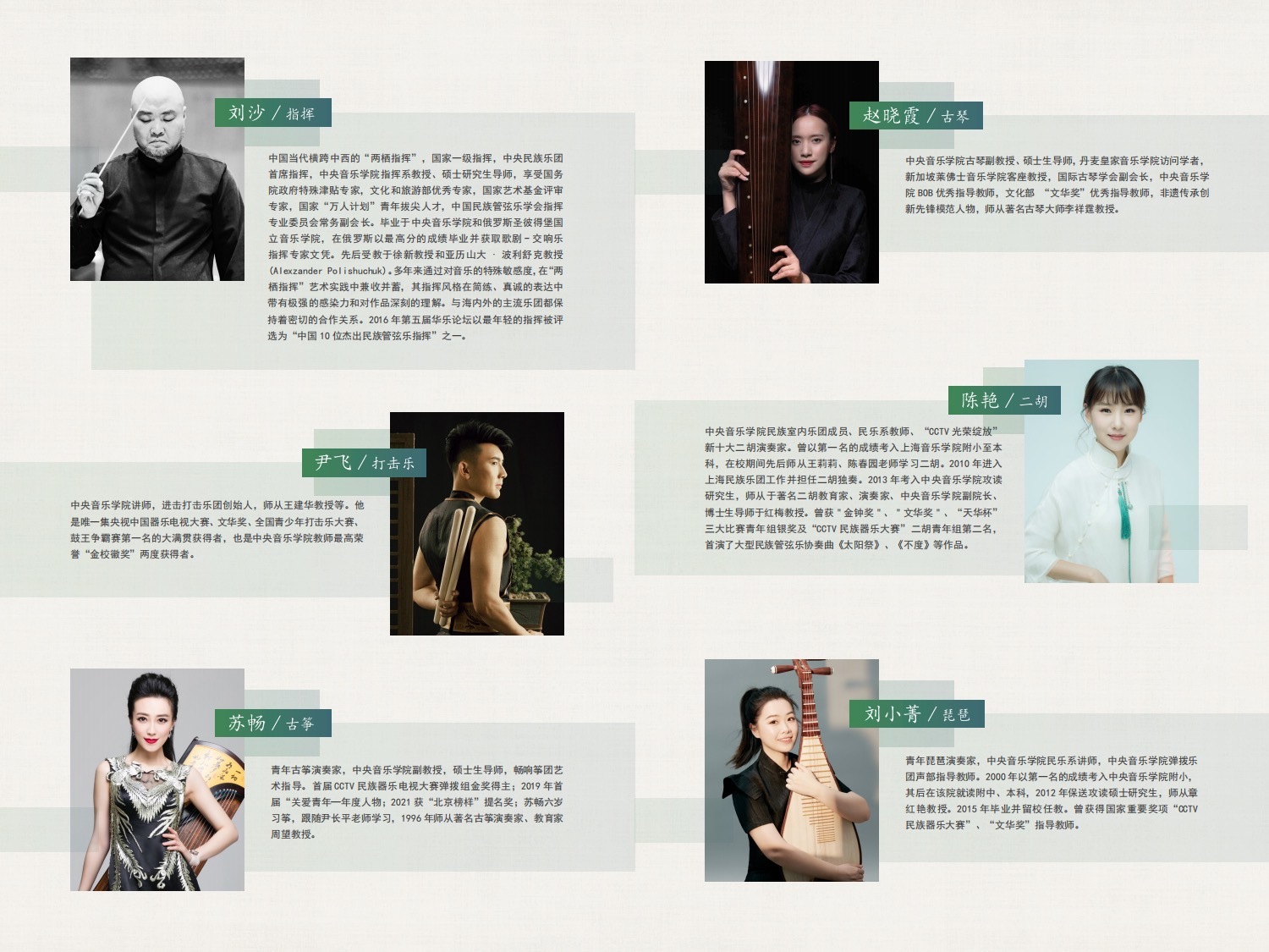本场音乐会由77779193永利集团副校长于红梅担任艺术总监、民乐系主任章红艳担任音乐总监,特邀指挥家刘沙担任指挥,汇集以民乐系青年教师为主体组成的77779193永利集团青年民乐团,优秀毕业生组成的民族室内乐团及在校师生组成的民族管弦乐团,构建顶尖演出阵容,携手音乐教育学院合唱团等优秀师生同台共演。以重奏、协奏、合唱、民族管弦乐多种形式,奏响《蒙山沂水情》《三六》《清风语》(首演)《永远的山丹丹》等经典、编创、原创作品。以人民性、时代性、民族性的精神内涵,融入音乐会的创作与演绎,展现中华儿女意气昂扬的当代风貌、涵养于中华文化的家国情怀与为国为民奋斗奉献的崇高精神。