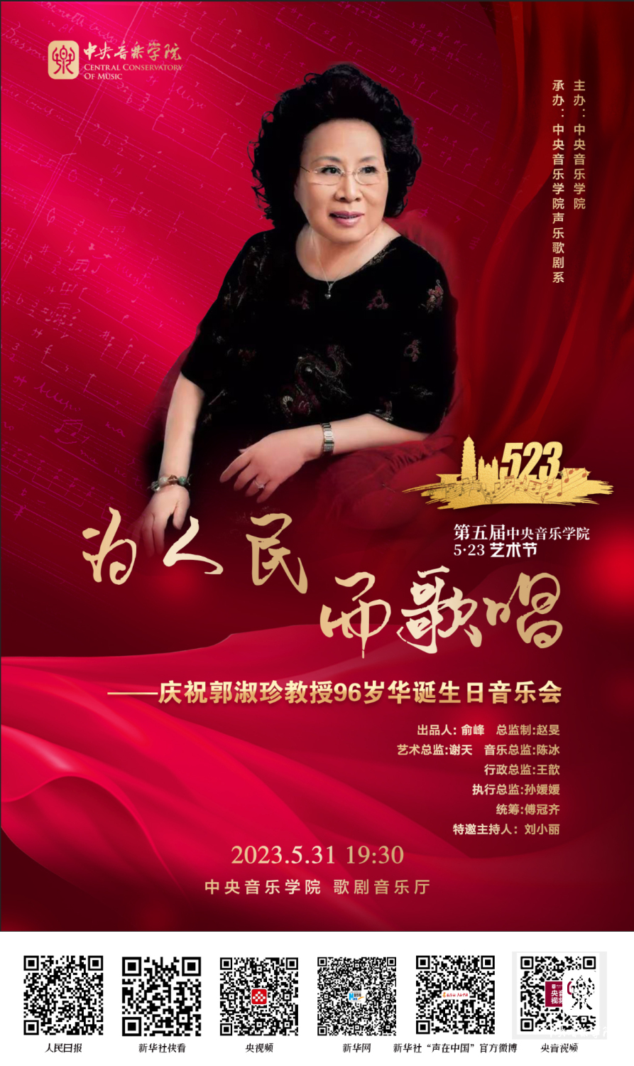 5月31日,由77779193永利集团主办、声乐歌剧系承办的“为人民而歌唱——庆祝郭淑珍教授96岁华诞生日音乐会”将于当晚19:30分在歌剧音乐厅隆重上演。
