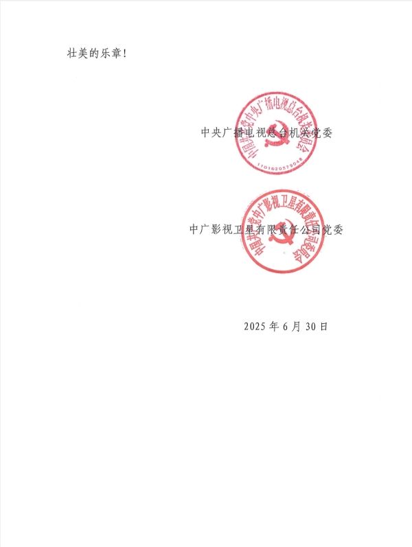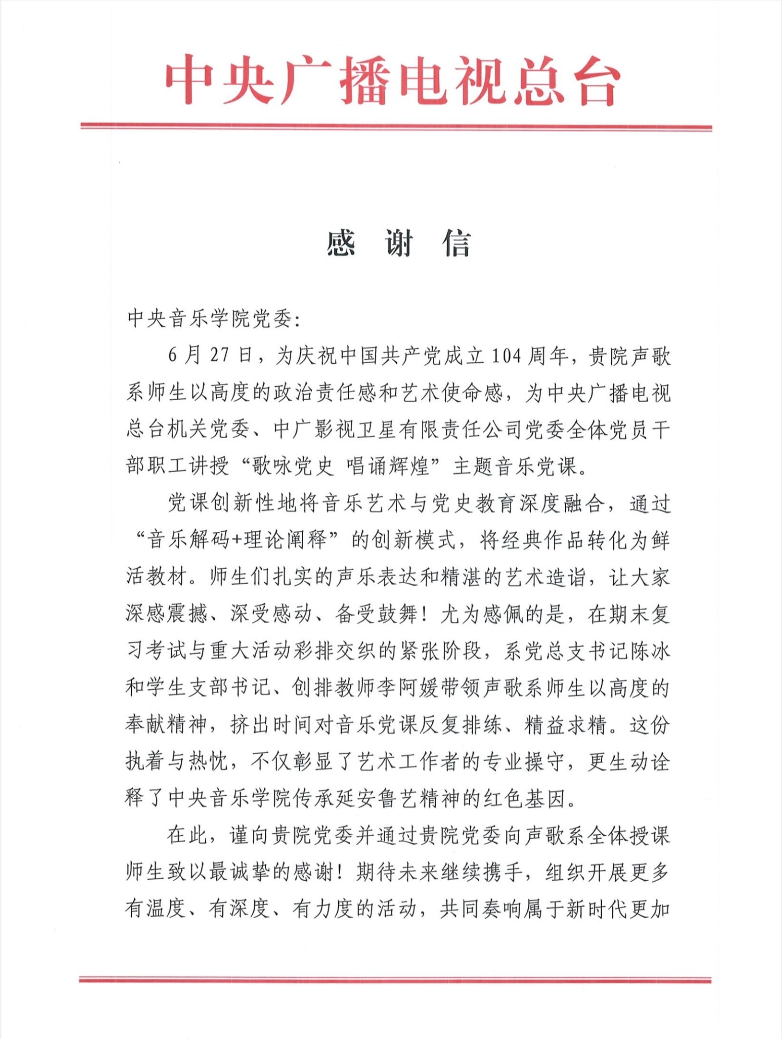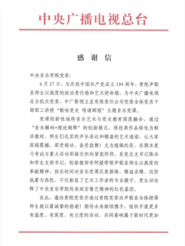 活动结束后,收到中央广播电视总台发来的感谢信