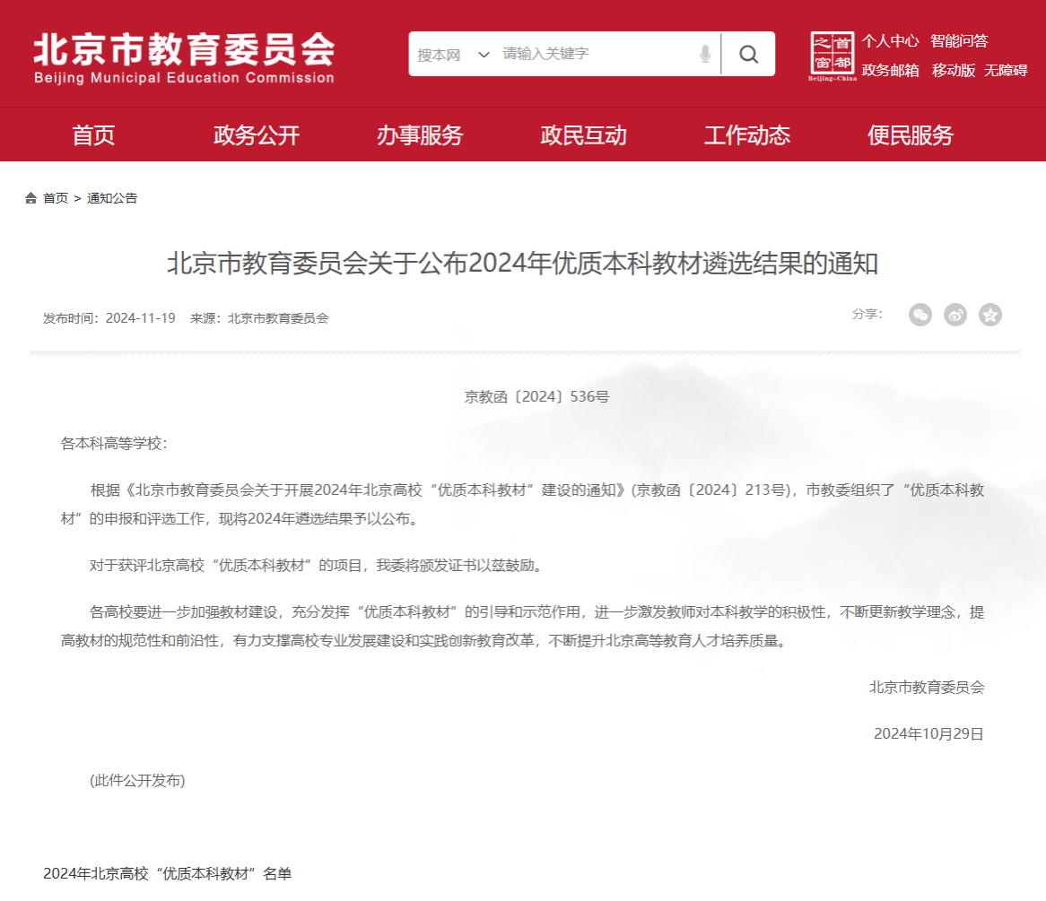 遴选结果的通知》(京教函〔2024〕536号),永利《对位法》(主编:周娟)获评“2024年北京高校优质本科教材”。