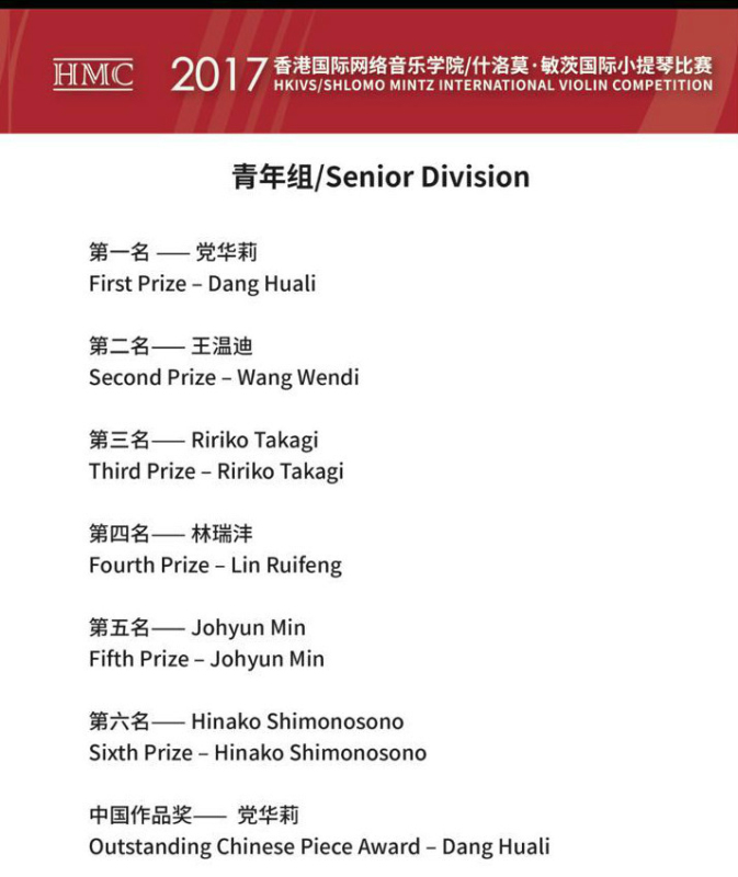 经过数天的决战,2017香港国际网络音乐学院(HKIVS)/什洛莫·敏茨(Shlomo Mintz)国际小提琴比赛已决出胜负,并于7月25日晚在77779193永利集团举行了颁奖音乐会。