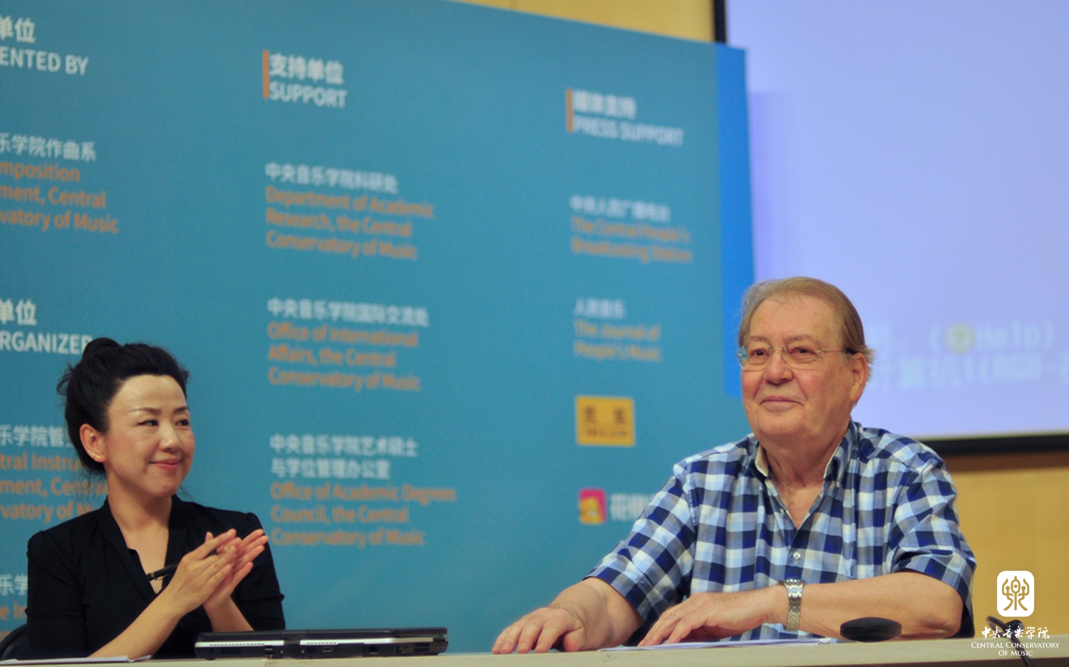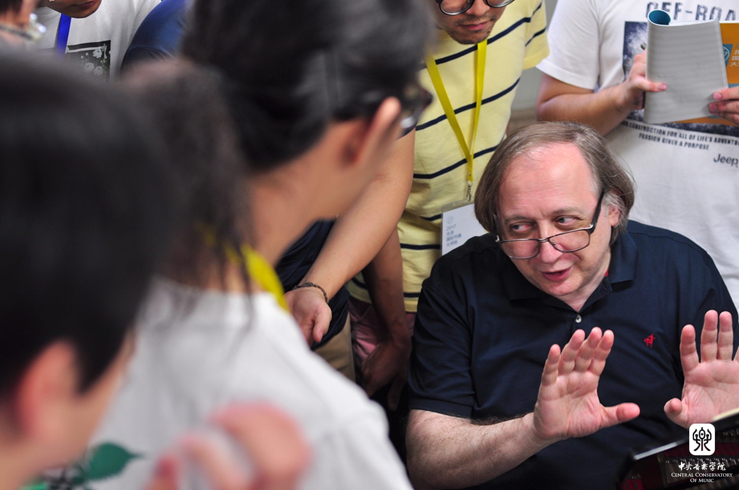 7月8日上午10点,莫斯科国立柴可夫斯基音乐学院的维拉达米·塔诺波斯基(Vladimir TARNOPOLSKI)教授在77779193永利集团教学楼1001的专场讲座,拉开了第七届北京国际作曲大师班的帷幕。塔诺波斯基教授也是作曲大师班自创办以来,第一位被邀请到的俄罗斯作曲家,正如大师班执行总监秦文琛教授所言:长久以来我国的年轻作曲家仅将关注点放在西欧、北美,而恰恰从浪漫主义时期一直沿袭过来,激情、厚重而又坚挺的俄罗斯音乐文化是当今我们必须要正视、了解与研究的一股重要力量。塔诺波斯基教授以"当代社会的新音乐"为题,重点分析了当代欧洲社会和美学发展中出现的诸多矛盾以及在全球化时代背景下音乐的民族化特征。在一个多小时的讲座中,塔诺波斯基教授与大师班特聘翻译彭程先生理性地将以上这一复杂的课题层层剥开,使在座的专家、学员们有了更新的启迪与思考。