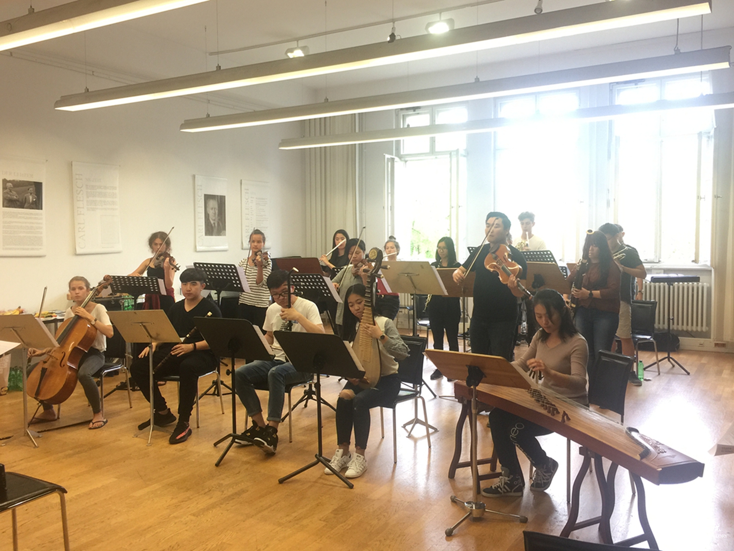 音乐会由德国埃森音乐学院教授托马斯·卢德思(Thomas Ludes)指挥,永利校友、打击乐演奏家胡胜男担任音乐会艺术总监及独奏。由就读于柏林各大音乐院校的中德青年音乐家、学生以及我院民乐系优秀学生共同组成的"欧洲青年古典室内乐团"联袂演出。永利学生陈思米、张佳康、季金、刘苏锐、冯飘扬演奏了《河南小曲》、《春江花月夜》、《花好月圆》三首脍炙人口且极富民族特色的重奏作品,为柏林观众带去了中国民族音乐的原汁原味与酣畅淋漓。数次将音乐会推向高潮,收获了观众无以复加的热情掌声。此外,为了此次中西乐器的合作,音乐节还邀请了我院作曲系教师邹航专门为作品进行改编。经过在柏林艺术大学为期6天紧张而愉快的排练,克服了语言与交流的障碍,永利与柏林的青年才俊共同排练、演出了巴赫、莫扎特、舒曼的多首室内乐作品,中西合璧,共同奏响了西方古典和谐之美。