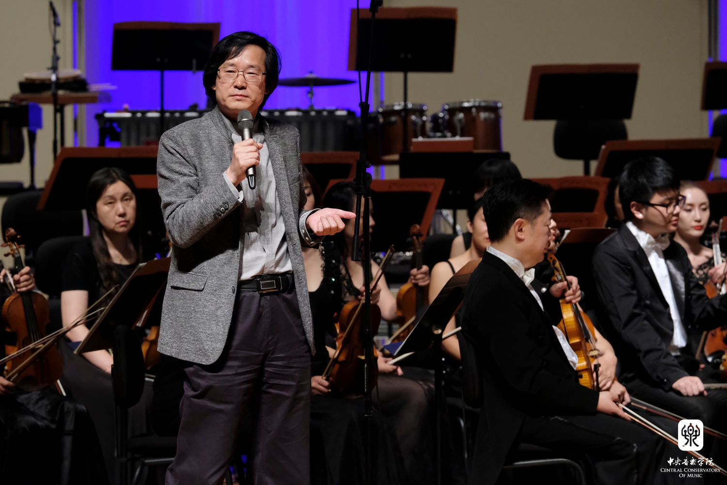 作为本场音乐会的开场曲目,作曲家陈丹布为管弦乐队而作的《袖剑与铜甲金戈》无疑让所有听众眼前一亮,音乐气势雄宏而不失灵动。根据陈丹布在作品导赏中的介绍,这首作品以战国时期荆轲刺秦的历史故事为创作背景,表现易水河畔众武士为荆轲送行,和歌操舞的场面。全曲的第一部分为“袖剑舞”,弦乐细密的音型展现了袖剑舞姿的绚丽、刚劲;第二部分为“铜甲金戈舞”,音乐模仿强烈的号角音型,表现出武士的英雄气概。