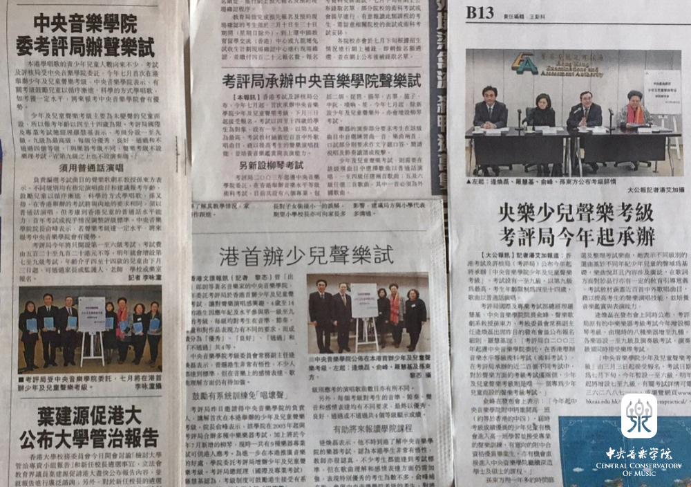 自2003年起我院与香港考评局合作举办中乐考级,并取得了良好的社会反响。此次针对4-14岁香港青少年及儿童特别推出了声乐考级,该考级也是目前香港考评局承办的所有考试中唯一为少年儿童设定的声乐考试,具有良好的考试前景及意义。
