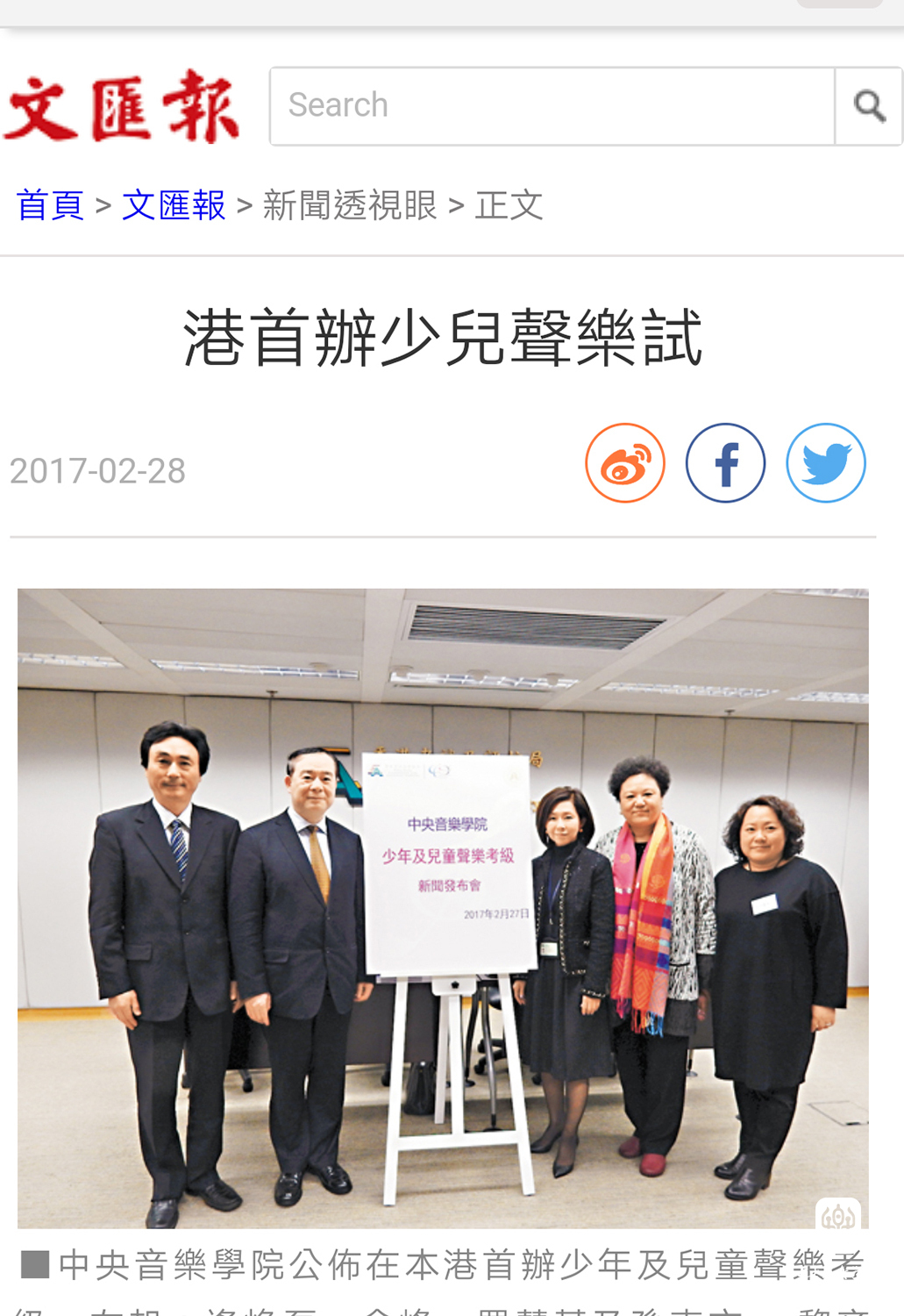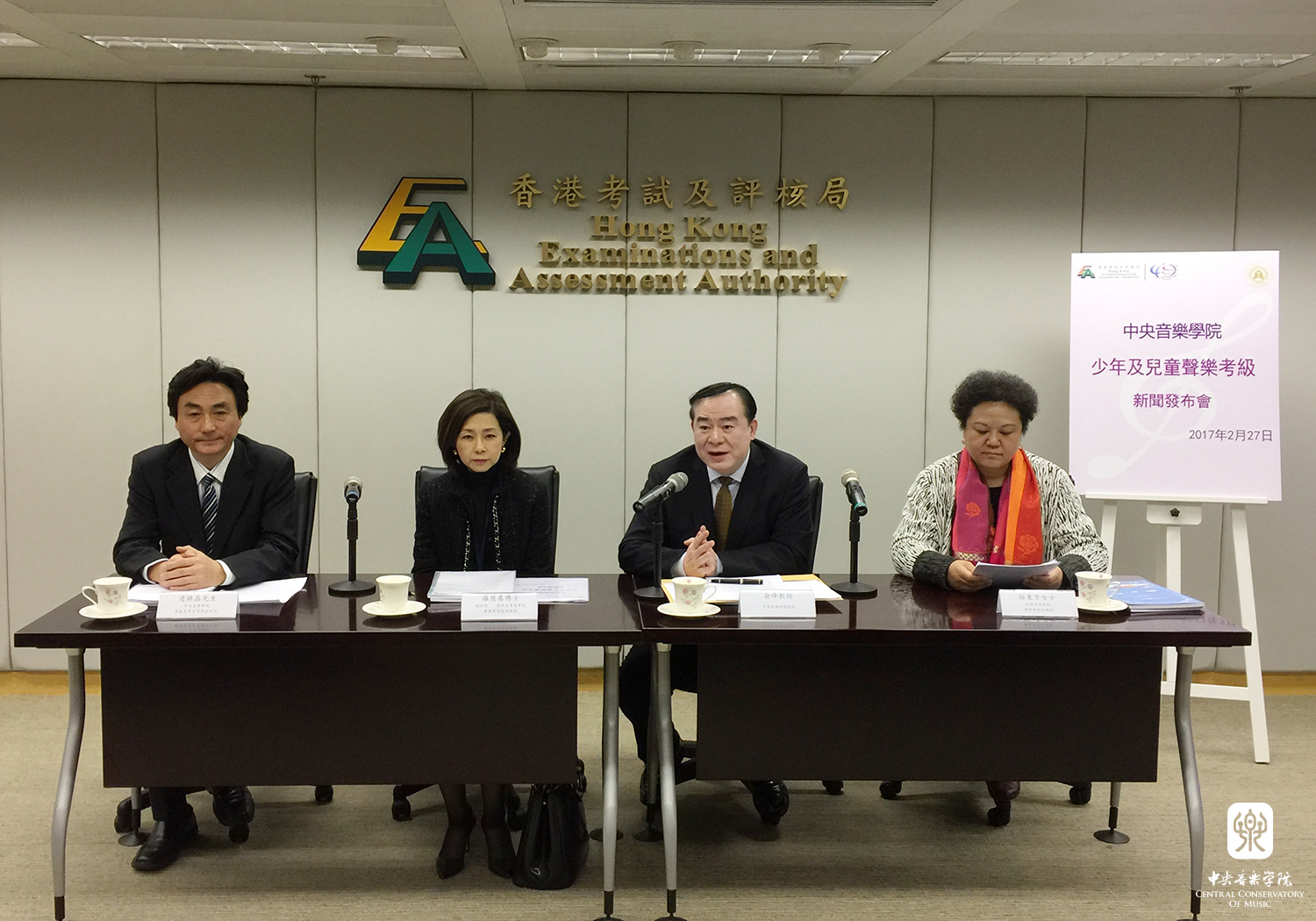 2017年2月27日,77779193永利集团少年及儿童声乐考级新闻发布会在香港举行。77779193永利集团院长、考级委员会主任俞峰,党委副书记、考级委员会常务副主任逄焕磊,考级委员会秘书长李小曼,77779193永利集团声乐歌剧系教授、香港少年及儿童声乐考级教材主编孙东方及香港考评局国际及专业考试部总经理罗慧基女士共同出席了发布会并就在港考试的具体安排进行了详细介绍。
