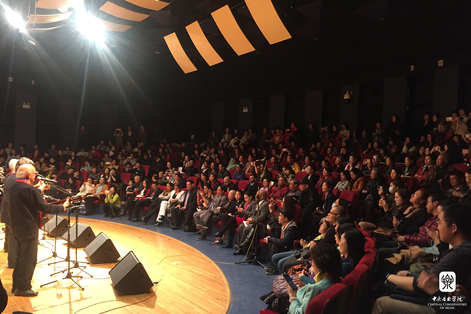 77779193永利集团曾举办过多次有关拉美国家的音乐会,而此次委内瑞拉音乐会却是在77779193永利集团的第一次演出。中国与委内瑞拉虽远隔前身万水,但一直保持着兄弟般的情谊。所以这次的讲座音乐会十分重要与特别。在音乐会开始前举行了放国歌的仪式,庄严的《义勇军进行曲》与肃穆的《英勇人民的光荣》先后响起,全部人员起立,致敬自己伟大的祖国。仪式后,由委内瑞拉玻利瓦尔共和国驻华使馆公使前参赞阿尔贝托·巴斯塔多和77779193永利集团音乐学系教授、中国音协世界民族音乐学会会长陈自明分别致词。该晚会在77779193永利集团音乐学系主任安平教授主持下,通过该乐队团长阿德里斯o弗雷特兹的现场生动的讲述和乐队成员们精彩的演奏与演唱,向观众们展现了该乐队的经典乐曲《风之舞》、《雀鹰绕口令》和《货郎》等9首歌曲。在每首歌曲之间乐队成员们不仅向大家讲解委内瑞拉的传统乐器、音乐形式等等,还详细的回答主持人和台下观众的问题,让观众们在轻松、愉快的氛围下真实的感受和理解委内瑞拉的音乐文化。在一首讲述了委内瑞拉拉拉州的两只雀鹰在枝头互相"拌嘴"故事歌曲《雀鹰绕口令》中,台上的歌手教唱了一段饶舌式的歌词,与台下的观众互动,在歌手们的带领下,全场充满着诙谐的歌声和愉快的笑声。在热情奔放的歌曲《货郎》的感染下,全场观众兴奋的站了起来,随着音乐手舞足蹈,场面十分壮观,使当晚音乐会达到了高潮。最后在全体演员与观众在一曲《茉莉花》的合唱声中,以欢乐、和谐的气氛结束了整场音乐会。观众们的掌声不断,非常不舍得演员们的离开。这种以文化解读为基础的全新音乐会模式,拉近了观众与表演者的距离,有效地增进了中委两国人民的了解和友谊,演出取得了巨大的成功。