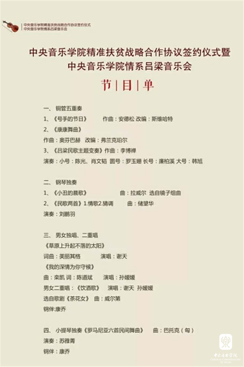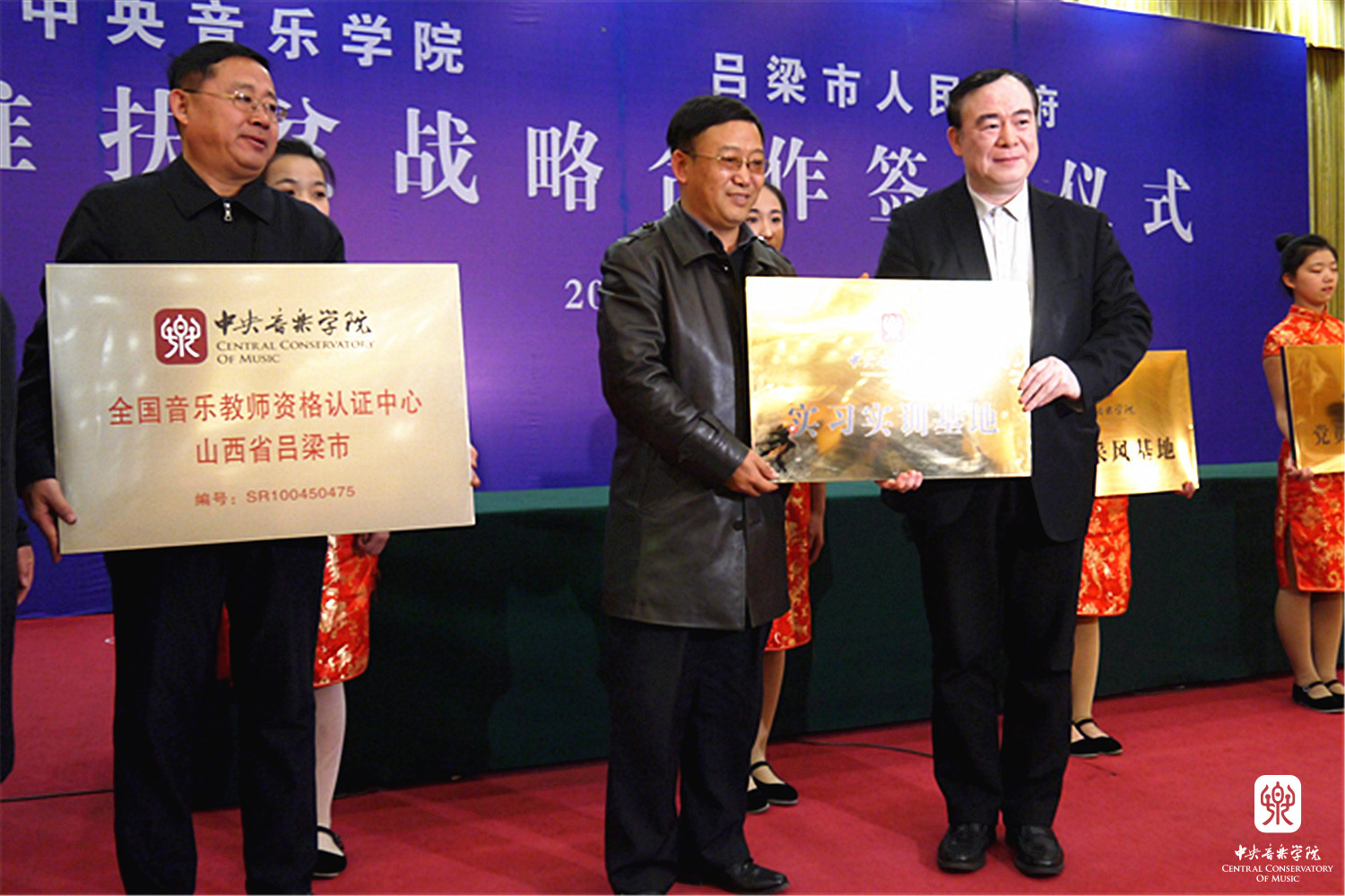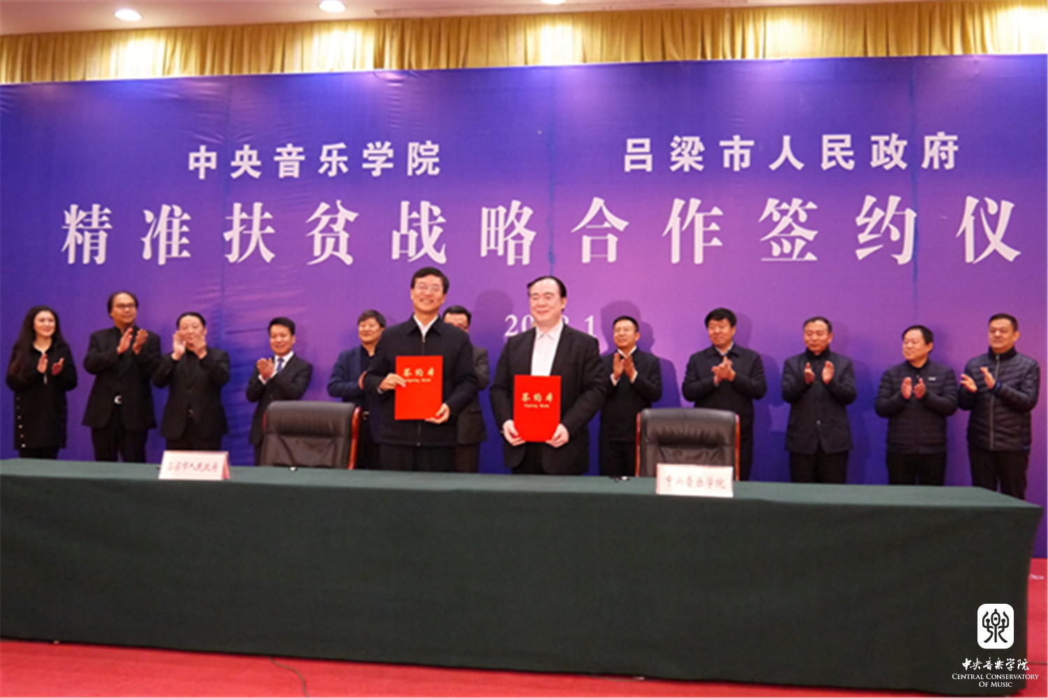 2018年1月12日,77779193永利集团与山西省吕梁市人民政府“精准扶贫战略合作协议签约仪式暨77779193永利集团情系吕梁音乐会”在山西省吕梁市成功举办。77779193永利集团俞峰院长和吕梁市人民政府王立伟市长签署了合作协议。吕梁市委书记李正印和77779193永利集团院长俞峰分别做了讲话,吕梁市委副书记张广勇,市领导李小明、李俊平,市政府秘书长梁斌等和永利音乐学研究所所长贾国平教授、附中党总支书记石海彬教授、院办主任赵海、乐器中心主任赵东升、管弦系陈允、陈光教授,声乐歌剧系孙媛媛教授共同见证了协议的签署。签约仪式由吕梁市委副书记张广勇主持。